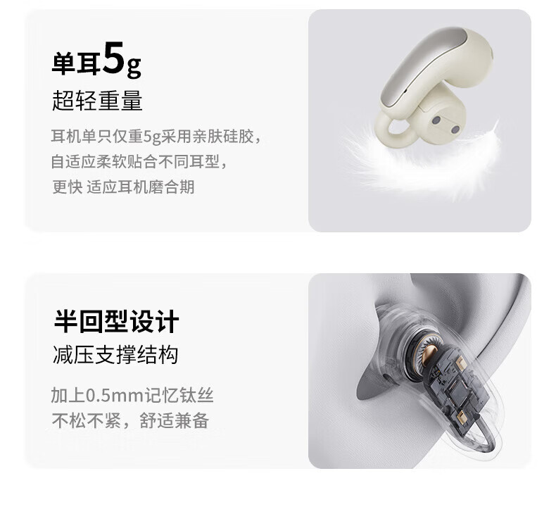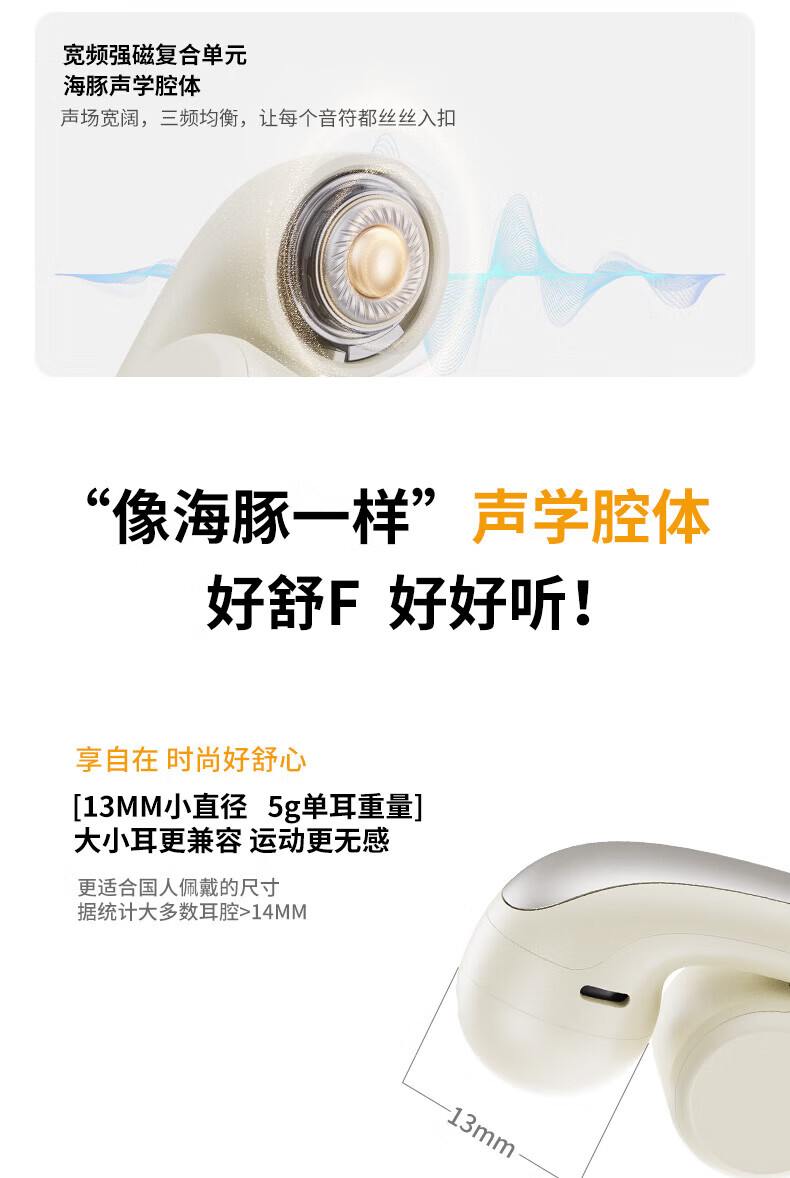 酷狗【音乐金榜】6.0蓝牙耳机耳夹式骨传导概念无线不入耳运动跑步降噪续航开放适用于苹果华为KG300 香槟金丨蓝牙6.0旗舰丨超长续航丨磁力数显