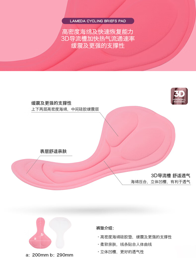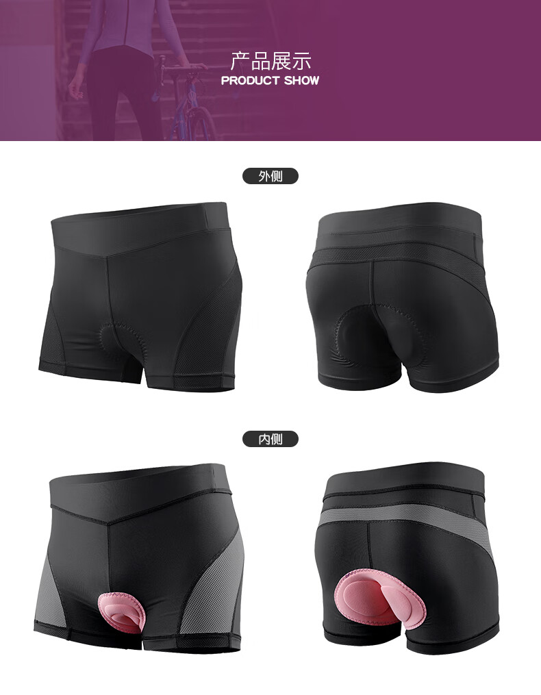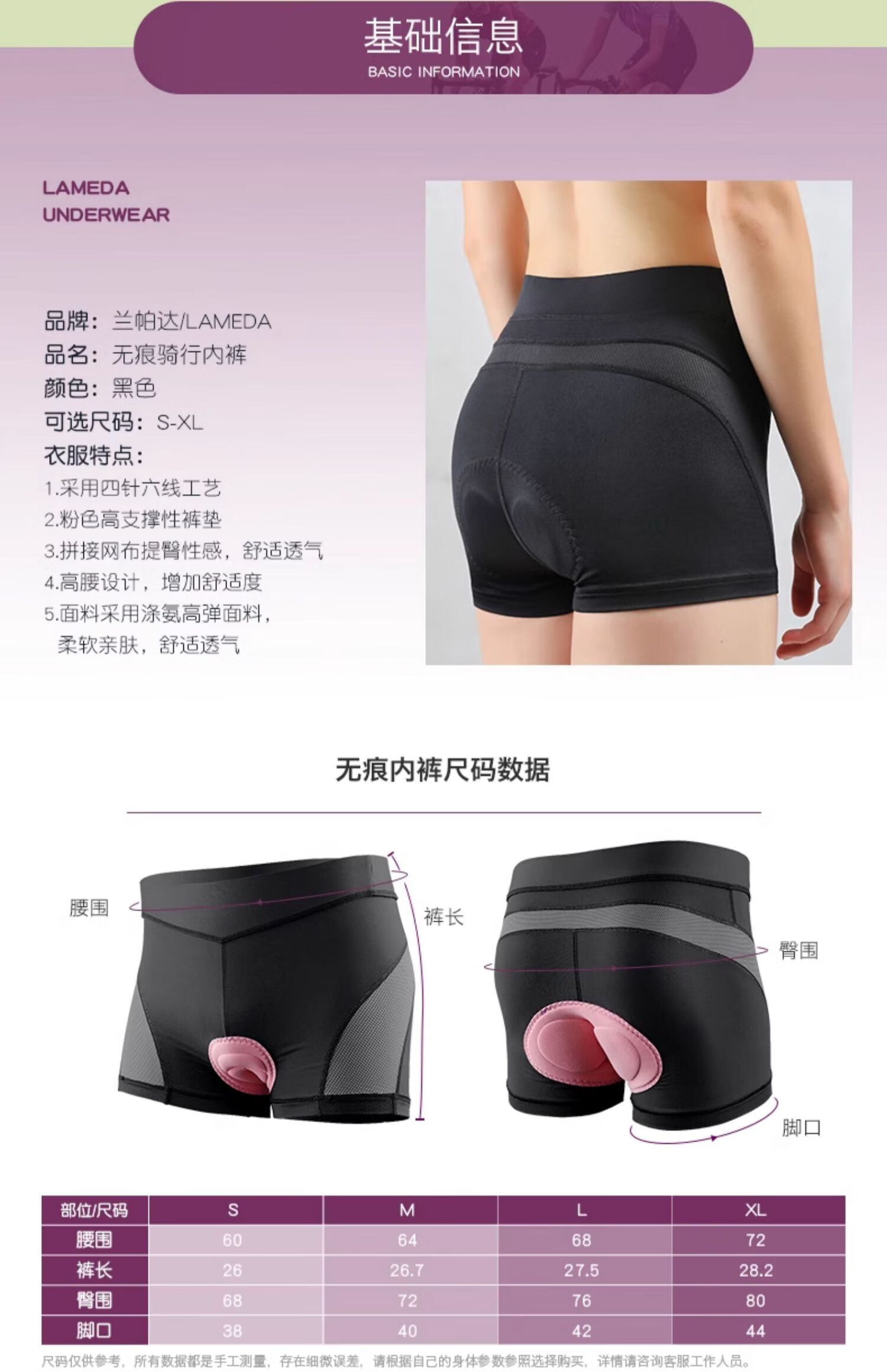 兰帕达自行车骑行内裤女硅胶海绵短裤山地公路车透气骑行短裤 骑行内裤-女款-黑色 XL