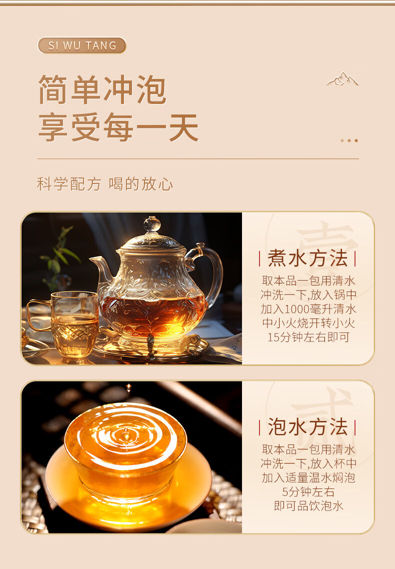 四物汤药材包地黄当归白芍川芎中药材补气养血桃红八珍袋泡茶正品 【提升款】 180g*4盒 720g
