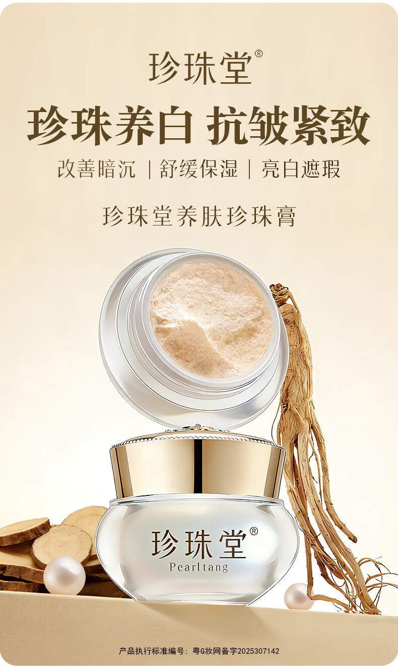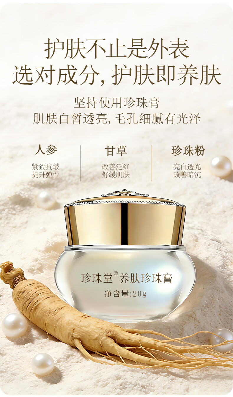 珍珠堂养肤素颜人参珍珠膏 汉方焕白面霜 嫩肤提亮 抗皱紧致 无须卸妆 【小瓶尝鲜】养肤珍珠膏5g