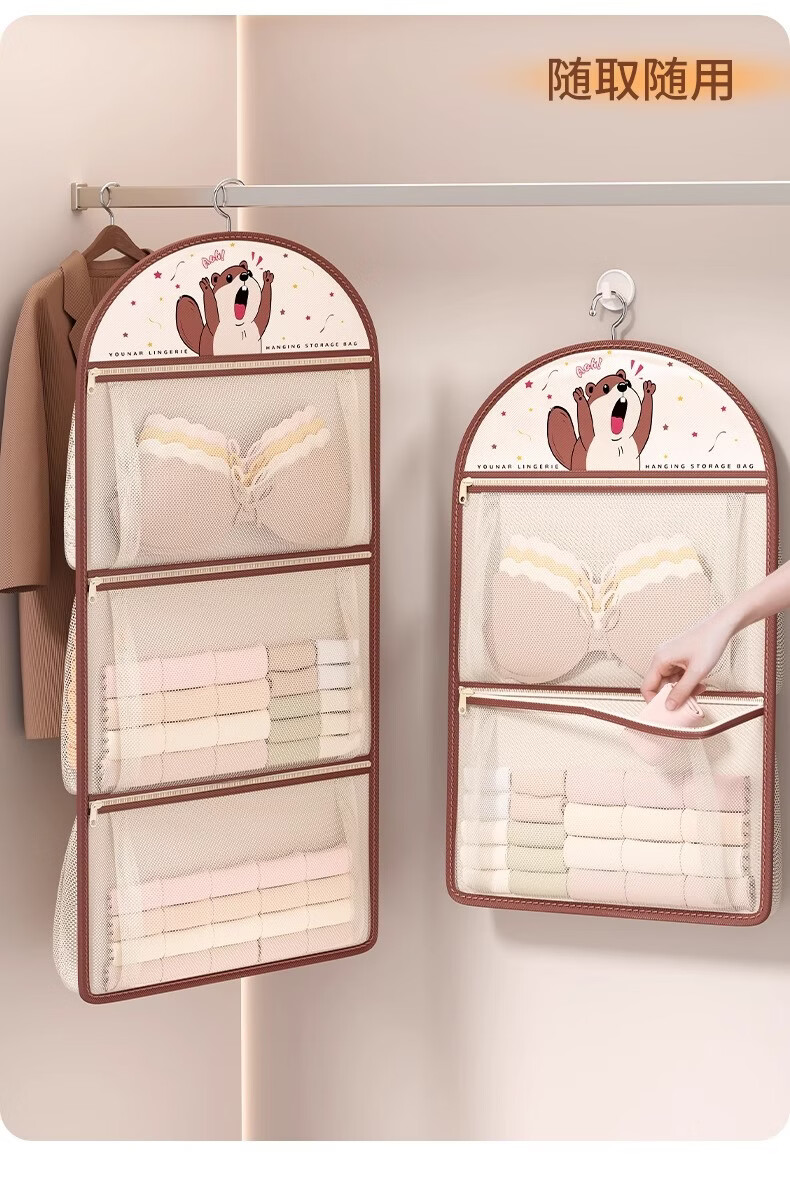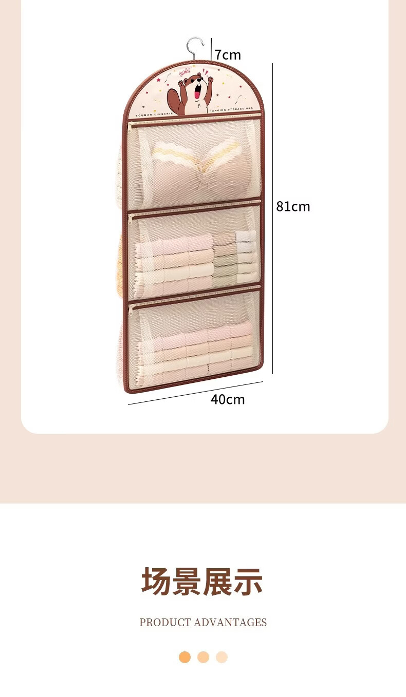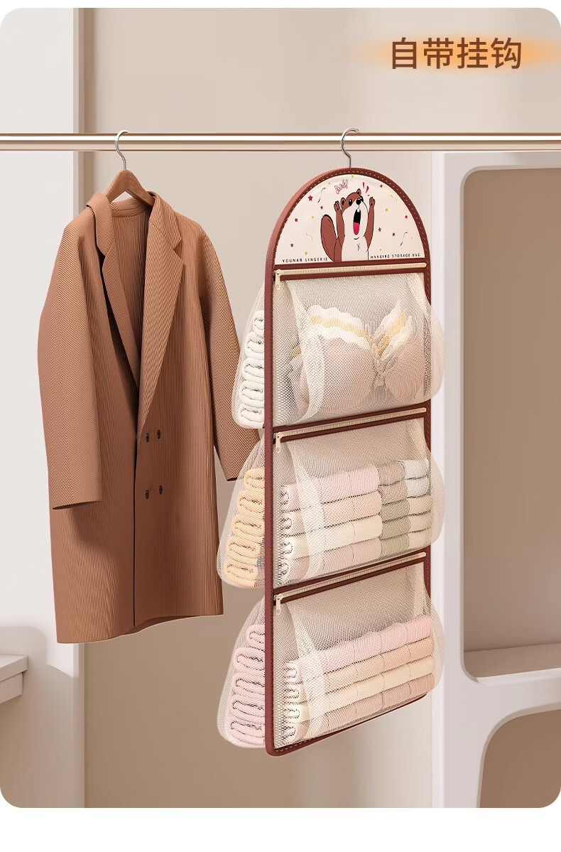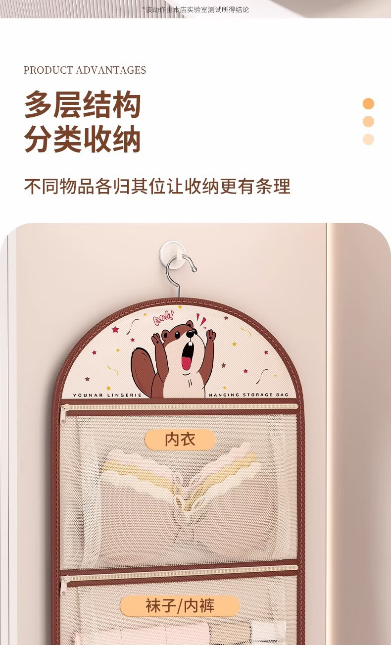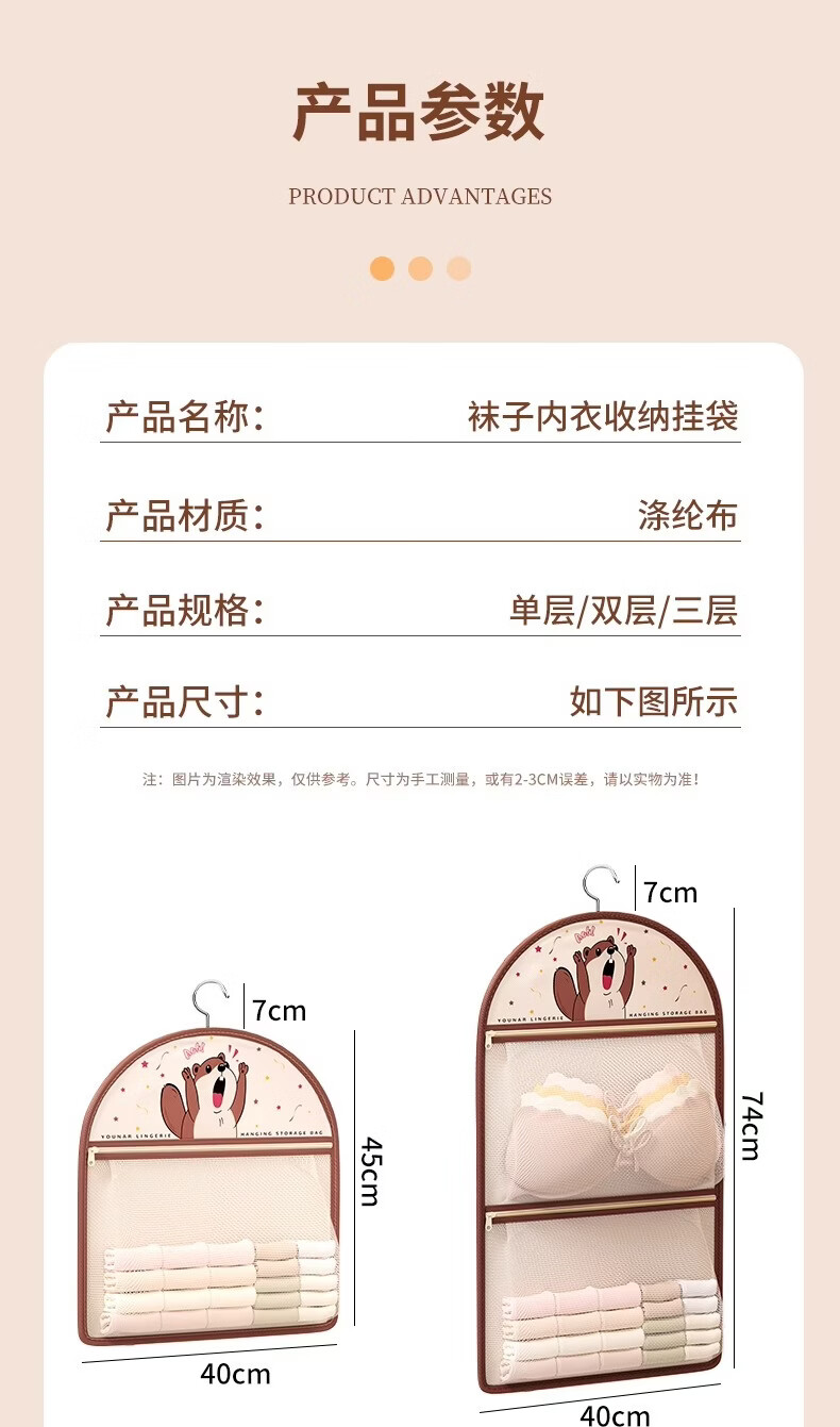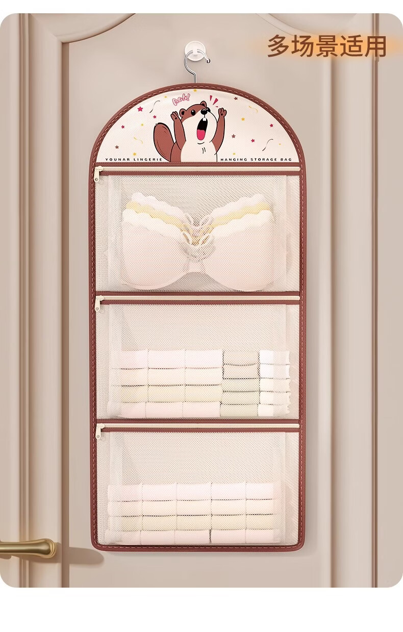 米卡博袜子收纳挂袋浴室内衣裤衣柜门后壁挂式厨房储物多功能悬挂墙网兜 跳跃狗-三层单面款【40*81cm】 #内衣袜子的新家#