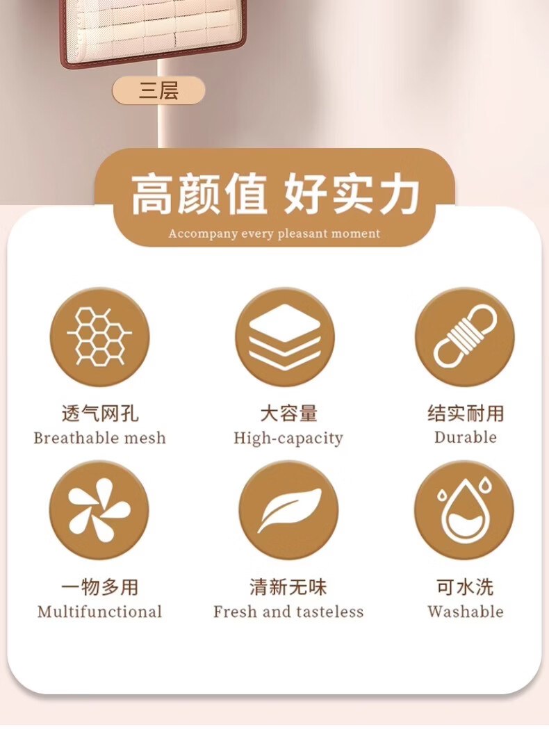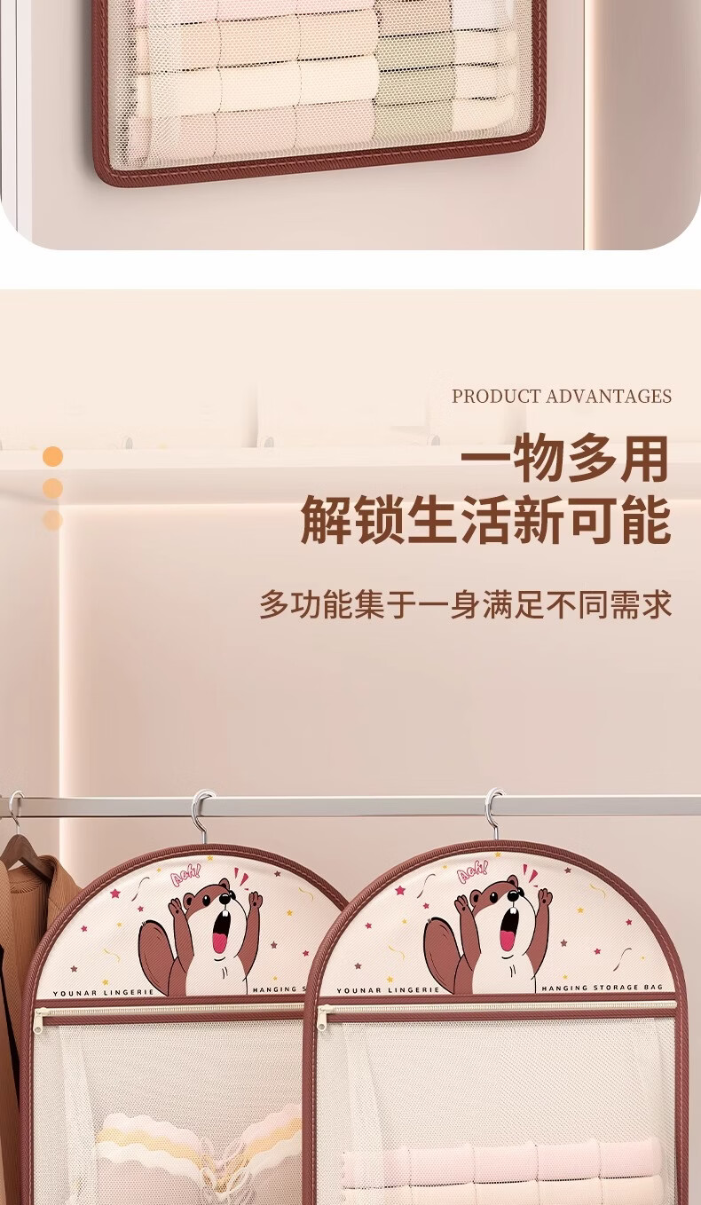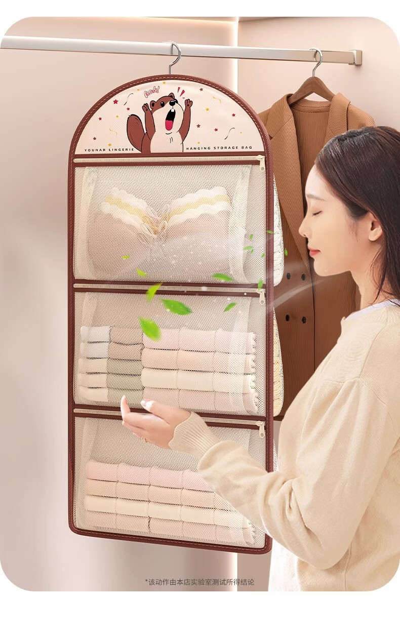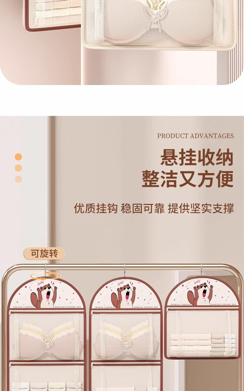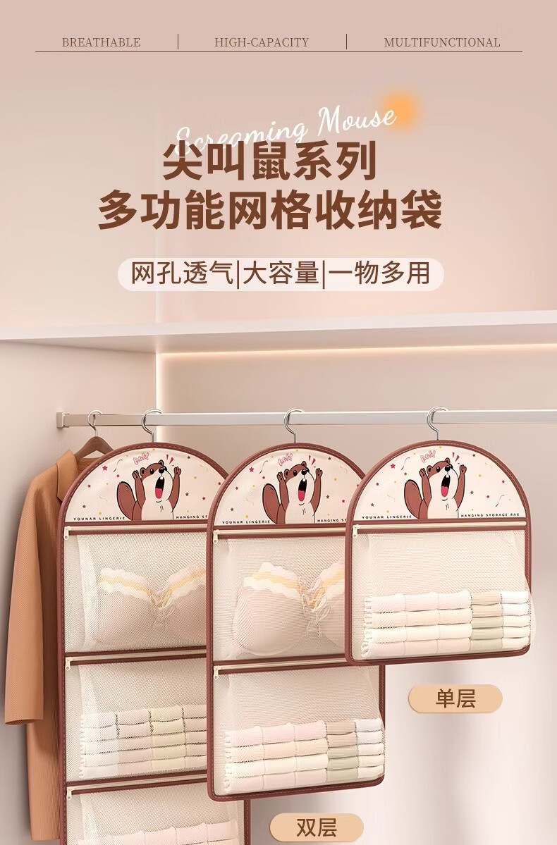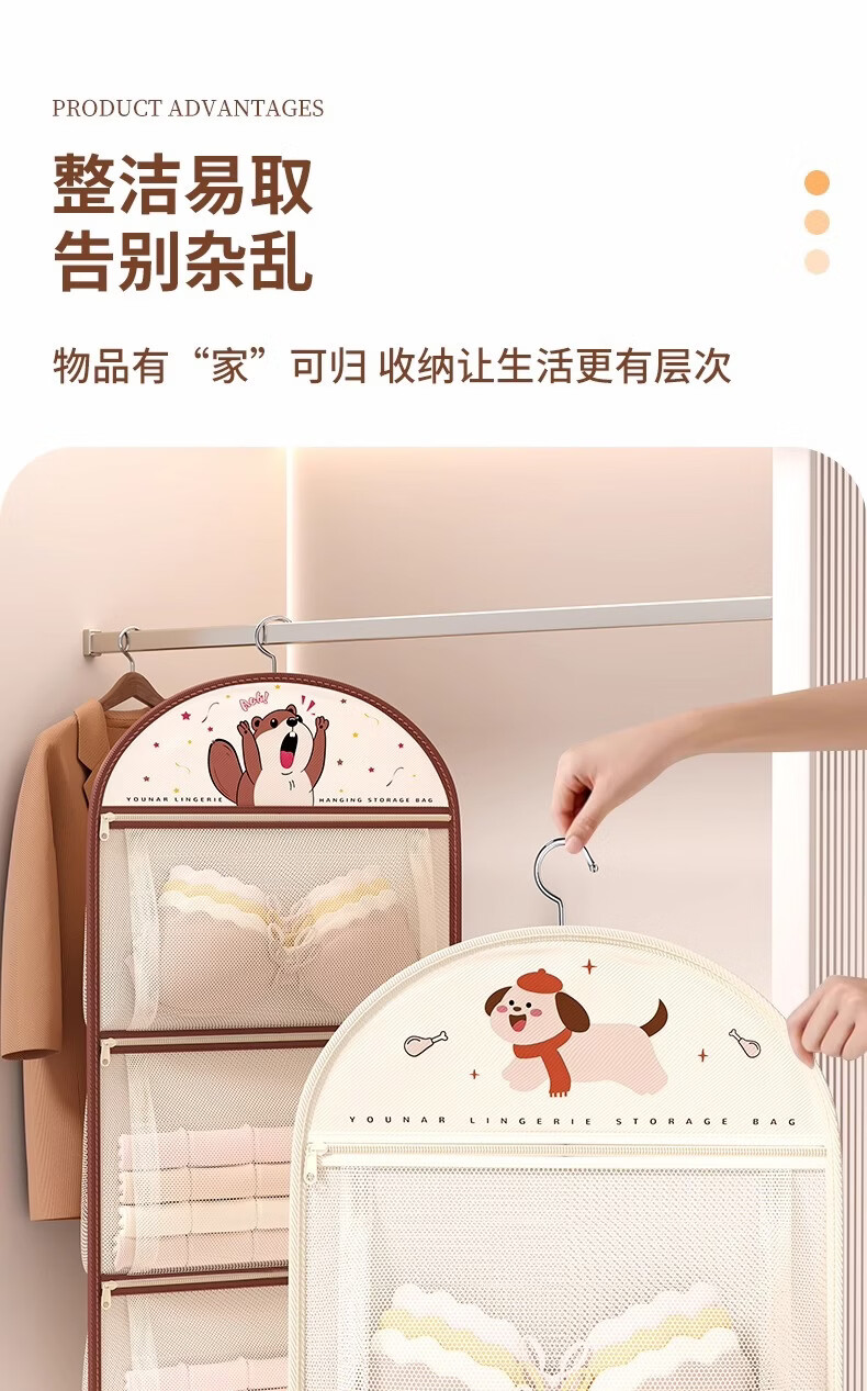 米卡博袜子收纳挂袋浴室内衣裤衣柜门后壁挂式厨房储物多功能悬挂墙网兜 跳跃狗-三层单面款【40*81cm】 #内衣袜子的新家#