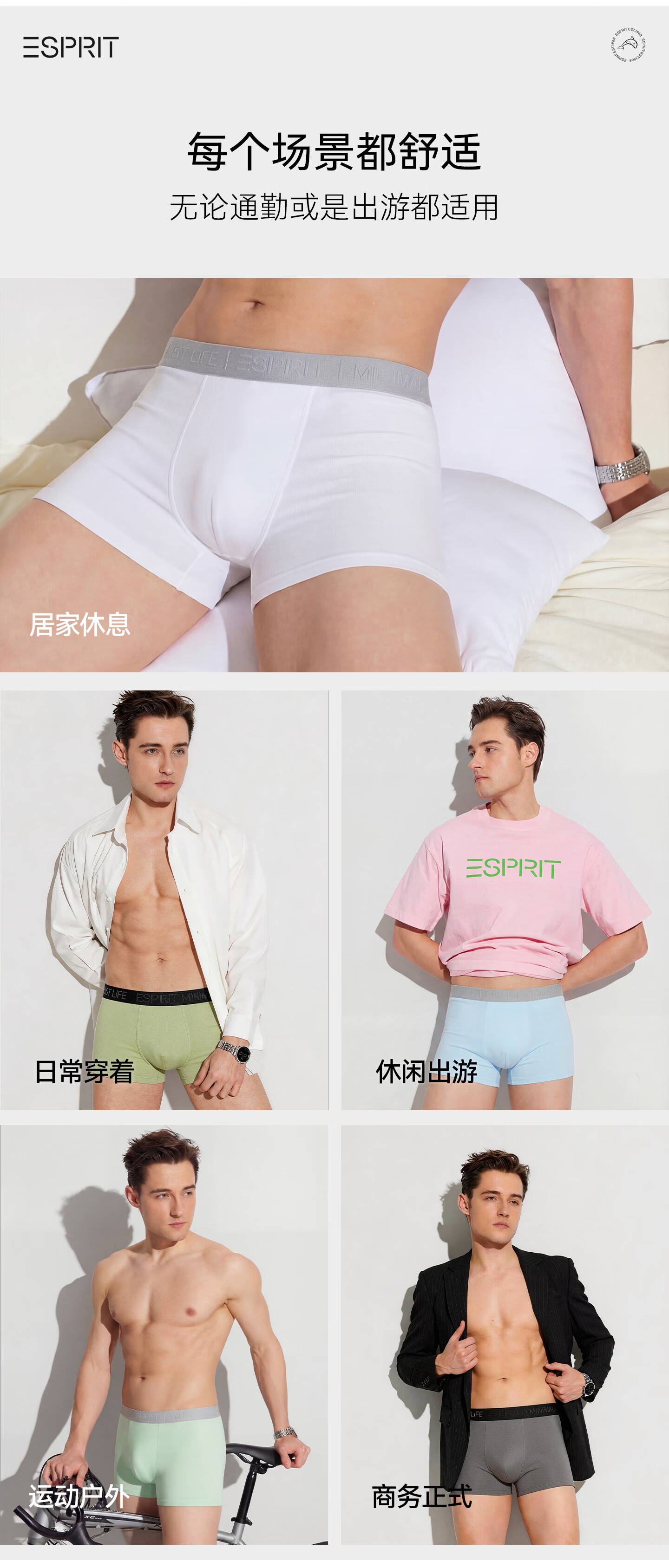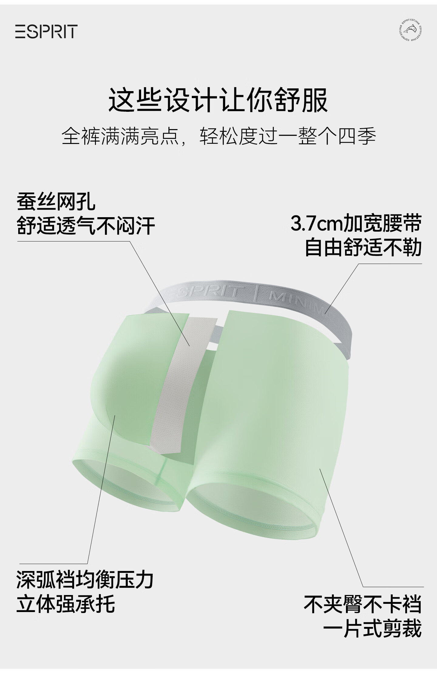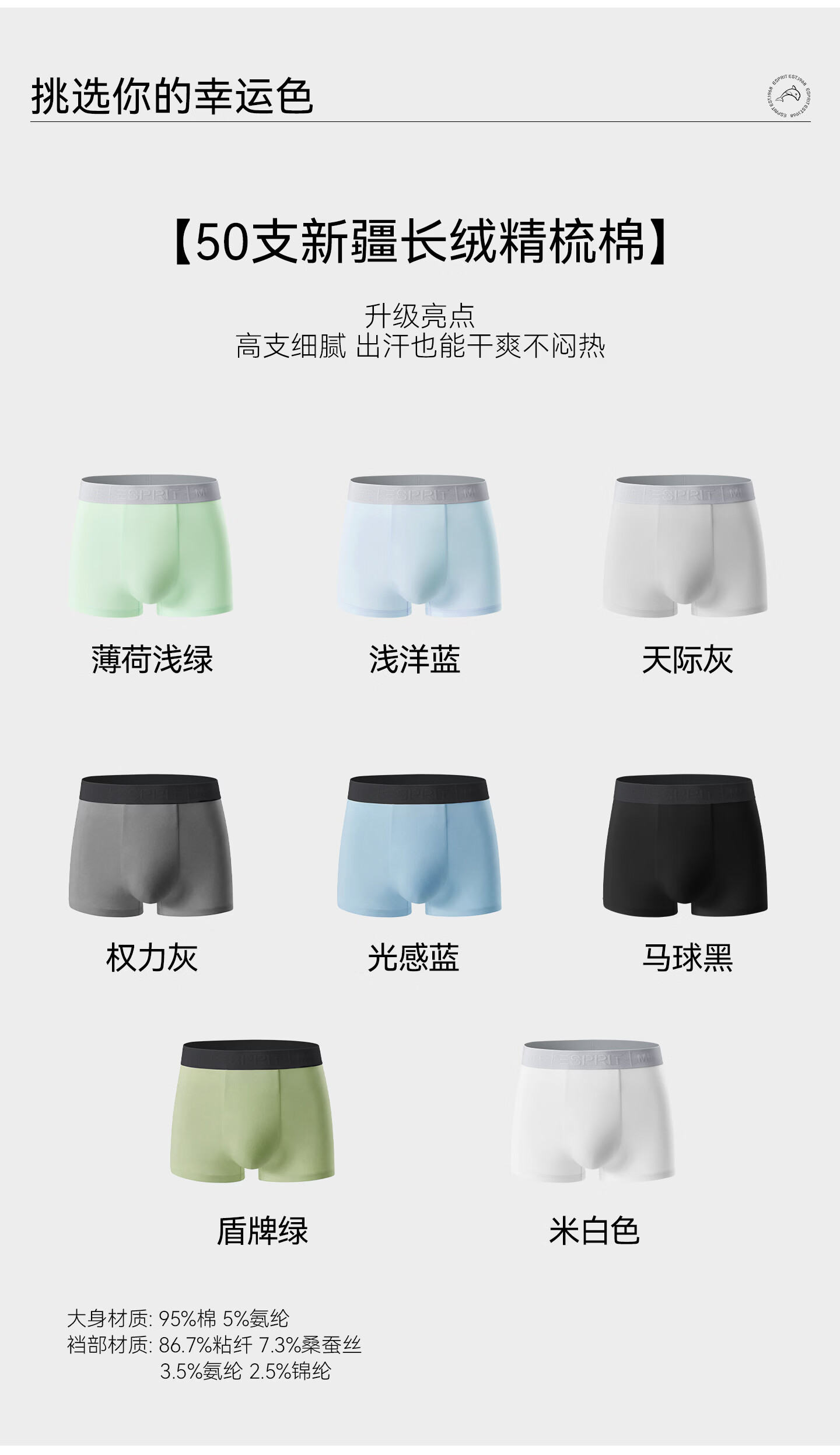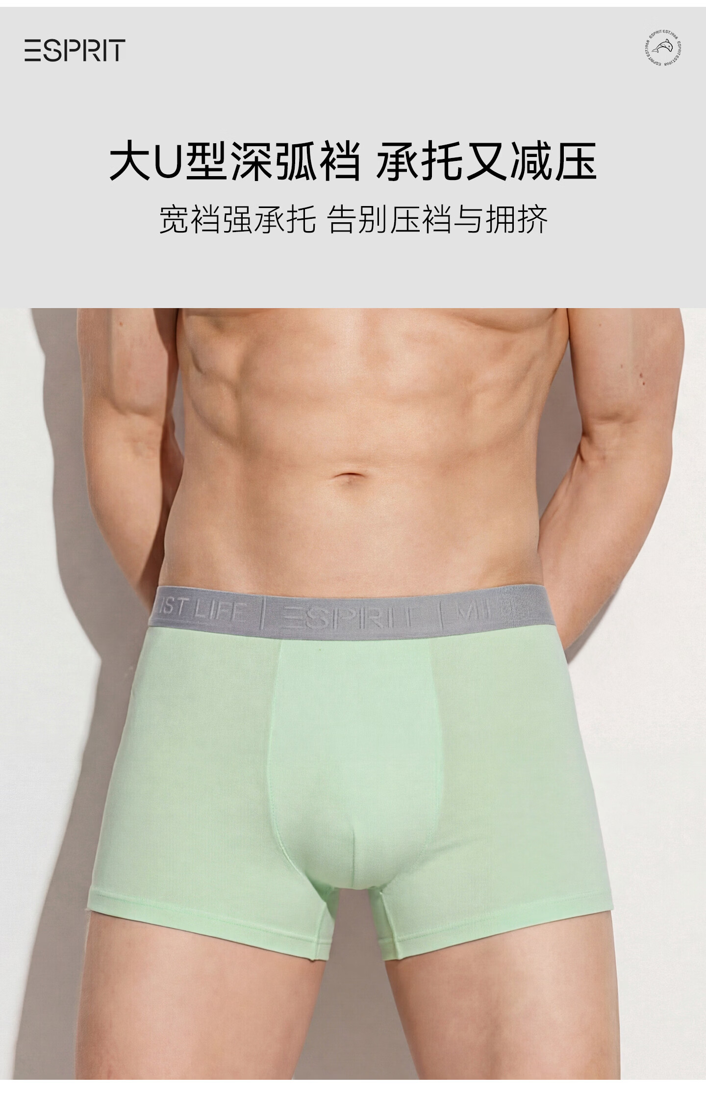 埃斯普利特(Esprit)内裤男士纯棉短裤10A抗菌四角裤衩吸汗透气运动男生大码平角裤头 盾牌绿+光感蓝+浅洋蓝 送礼盒+手提礼袋 3条 4XL (190) (190斤-210斤)