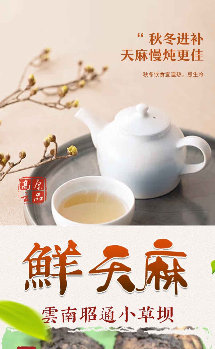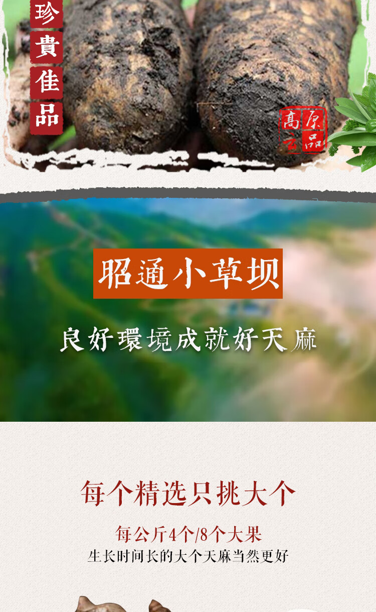 百年云松云南新鲜天麻2025 小草坝天麻 只挑大个天麻 营养滋补秋冬进补 新鲜天麻8-10个大果 1000g