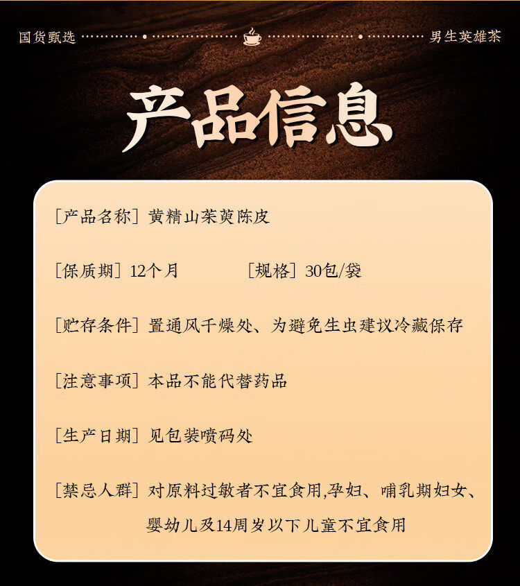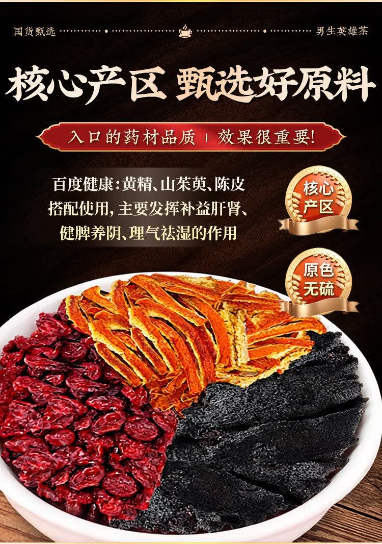 内廷上用黄精山茱萸陈皮组合装中药材泡水喝的功效与作用茶包独立包装 10包尝鲜装升级陈皮黄精山茱萸茶 10包*1袋