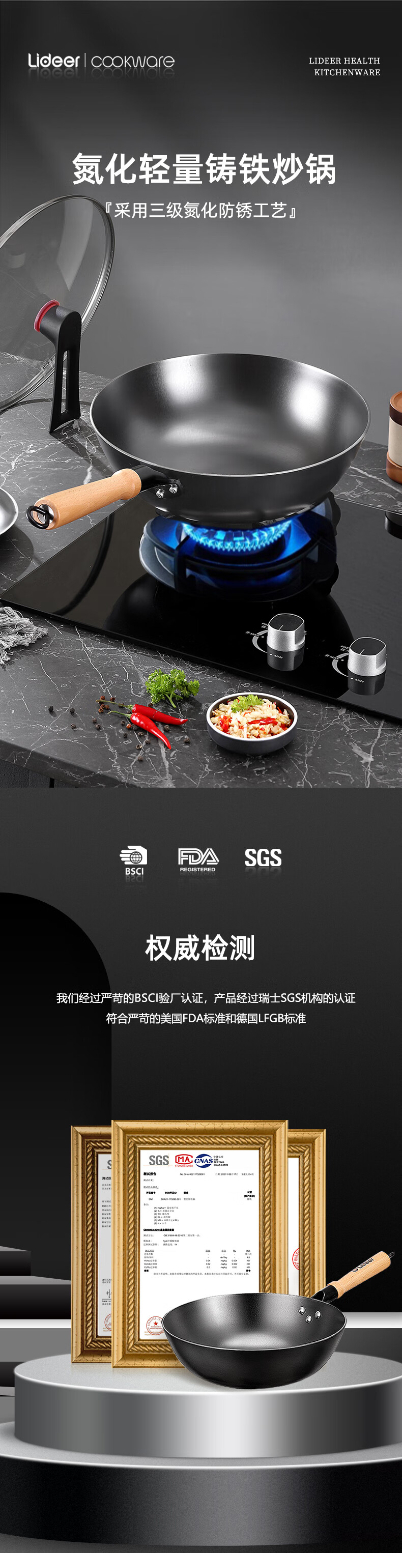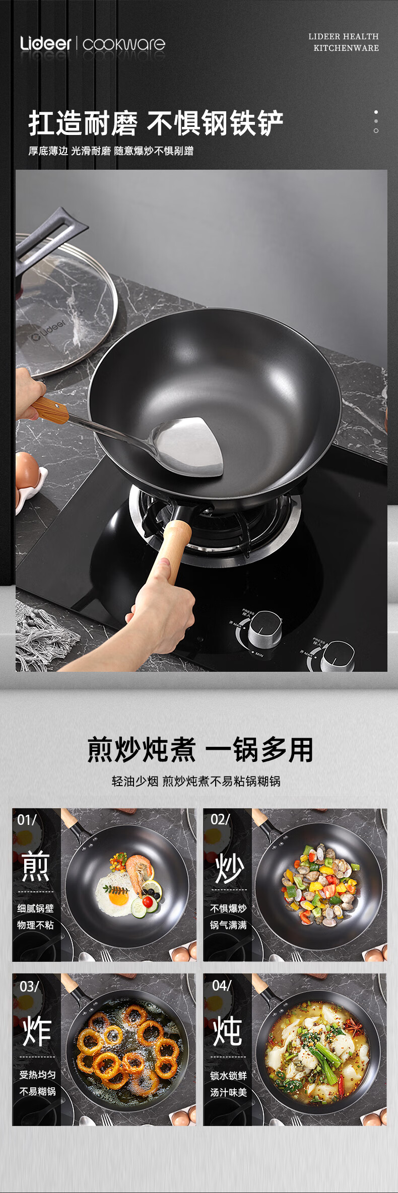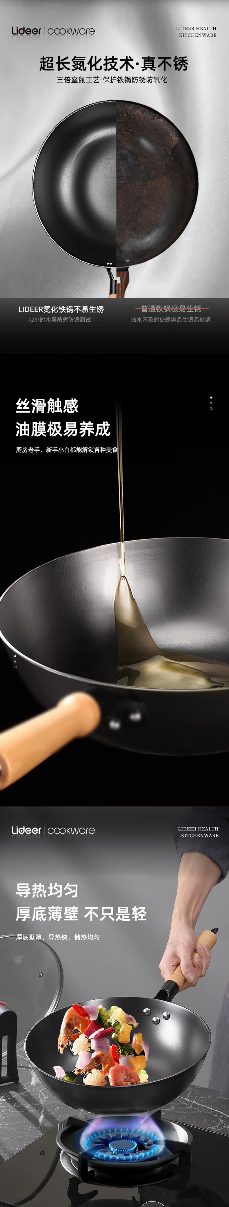 LIDEER COOKWARE立德尔炒锅铸铁锅无涂层平底锅家用炒菜锅电磁炉燃气通用烹饪锅具 【氮化轻量铸铁炒锅】带盖 28cm