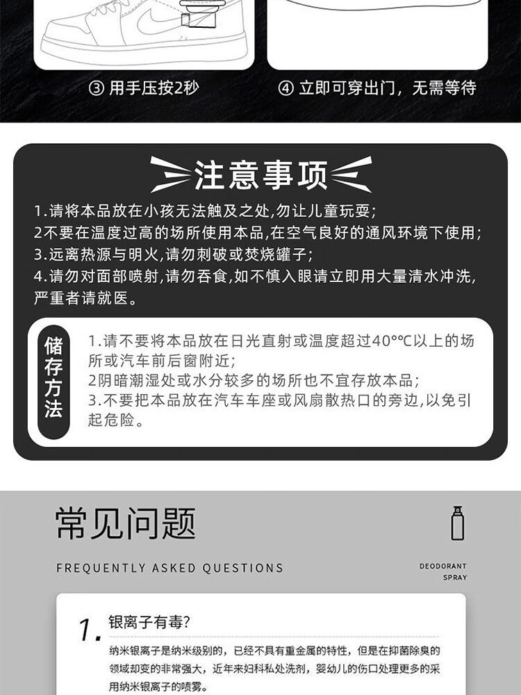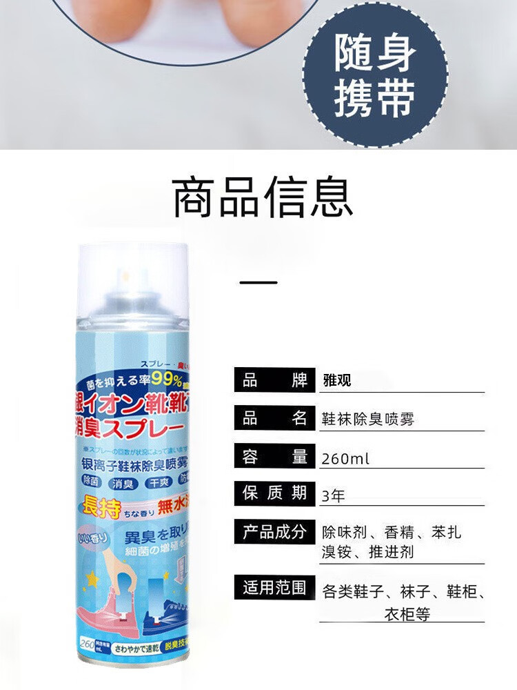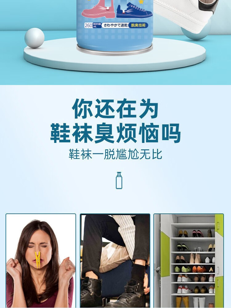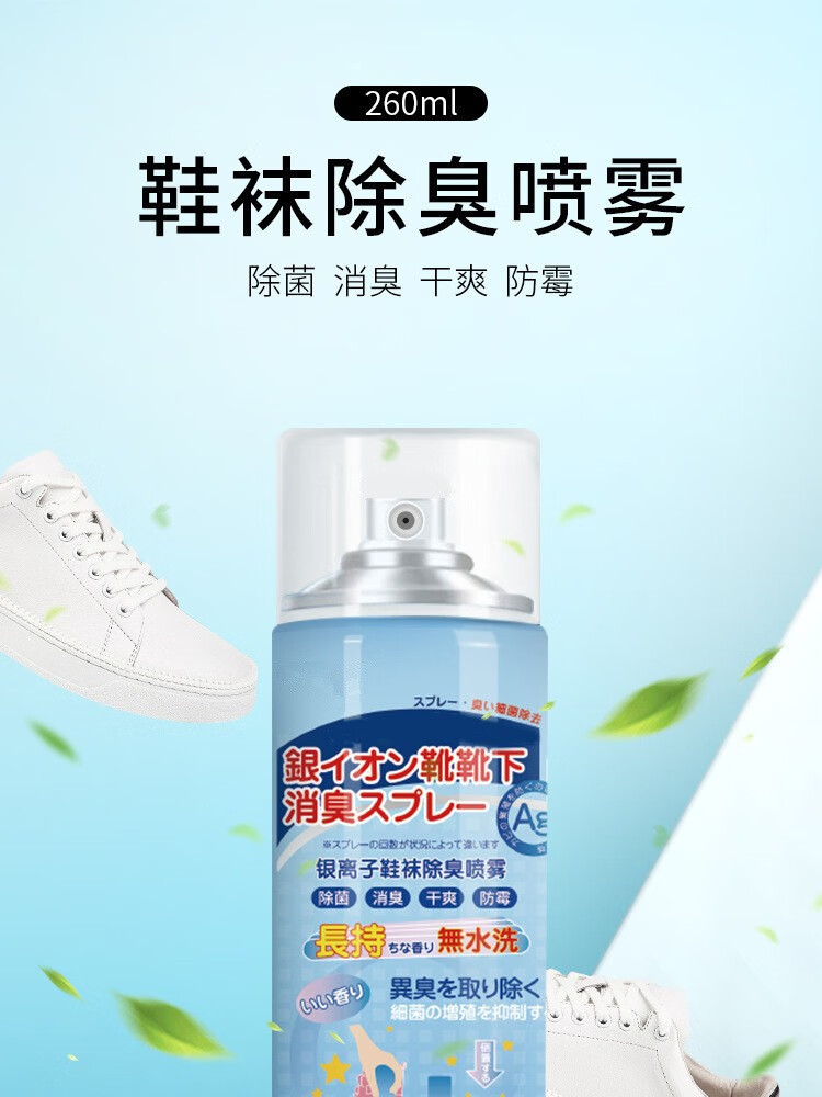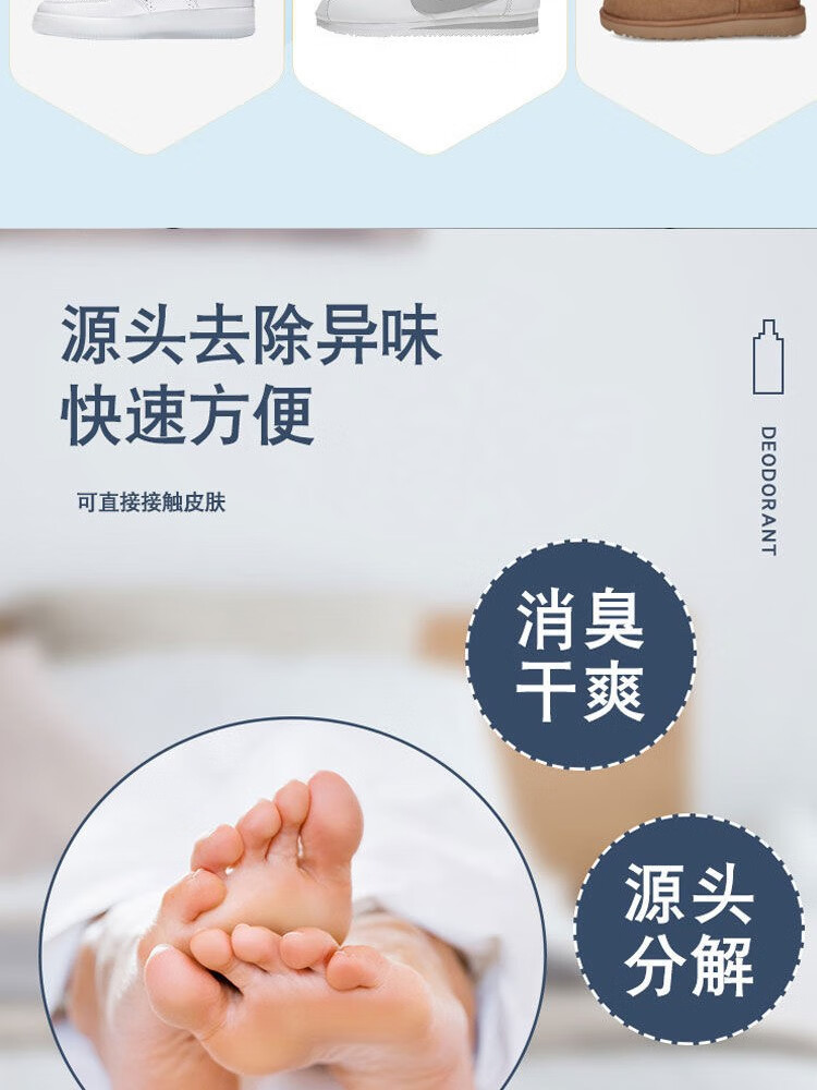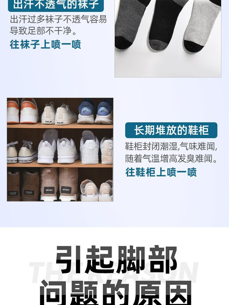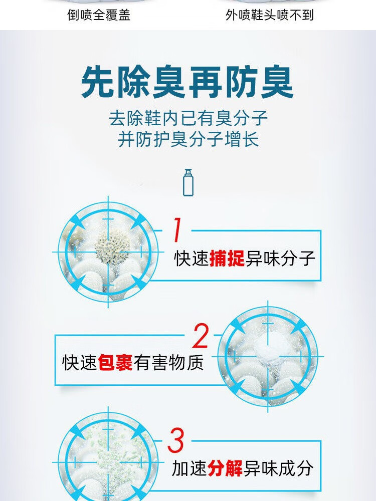 鞋袜除臭喷雾剂鞋袜去臭味球鞋防臭鞋柜除异味除菌杀菌去脚臭神器 2瓶