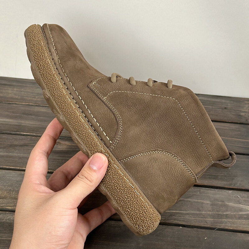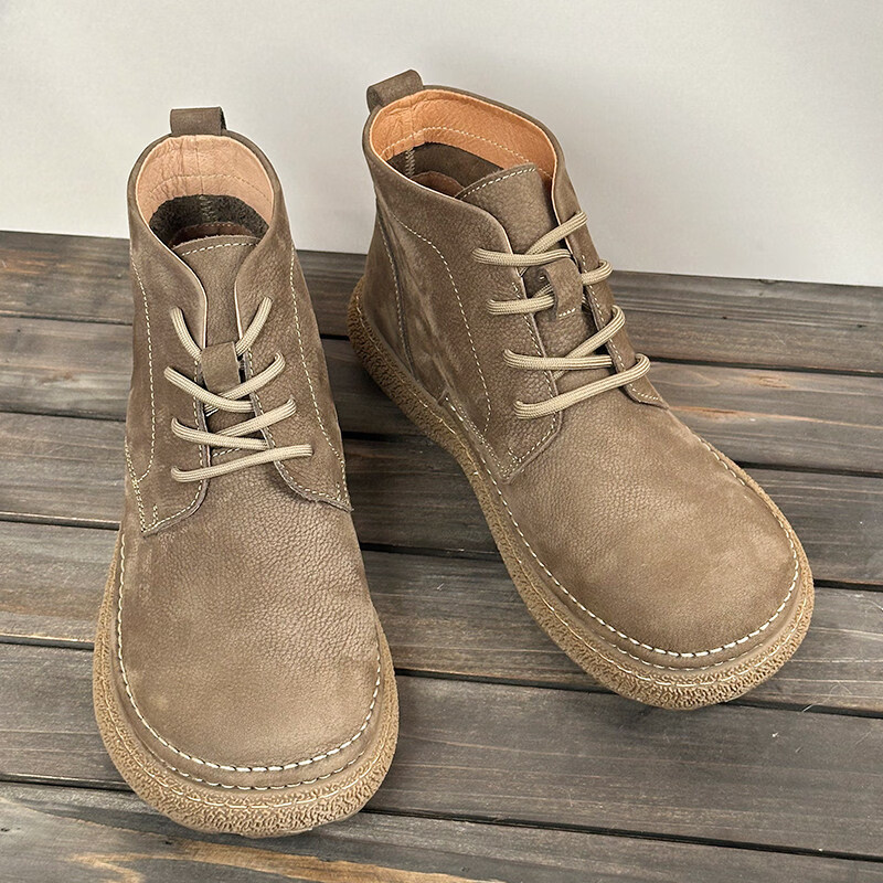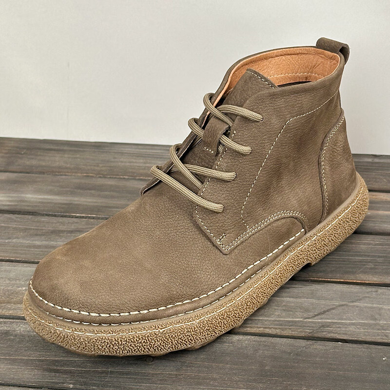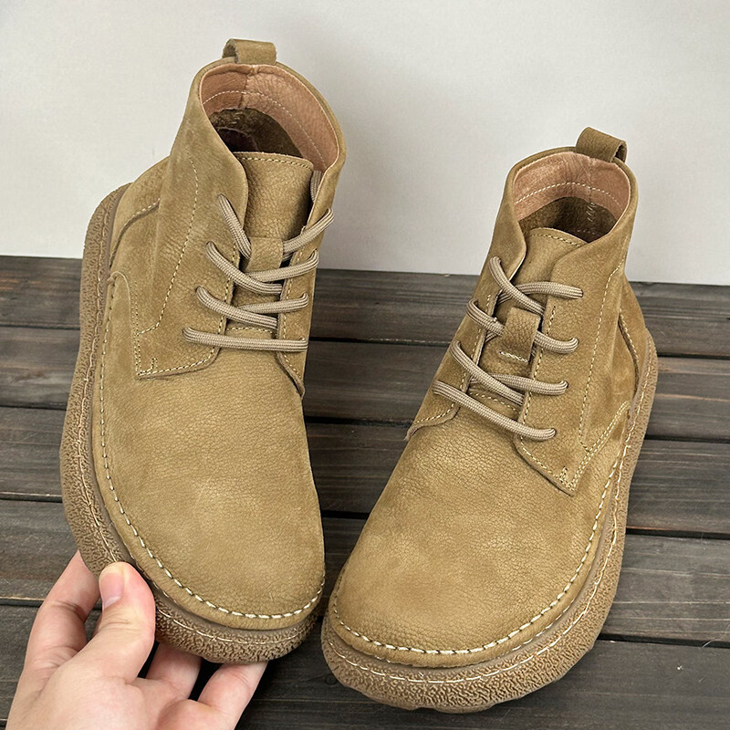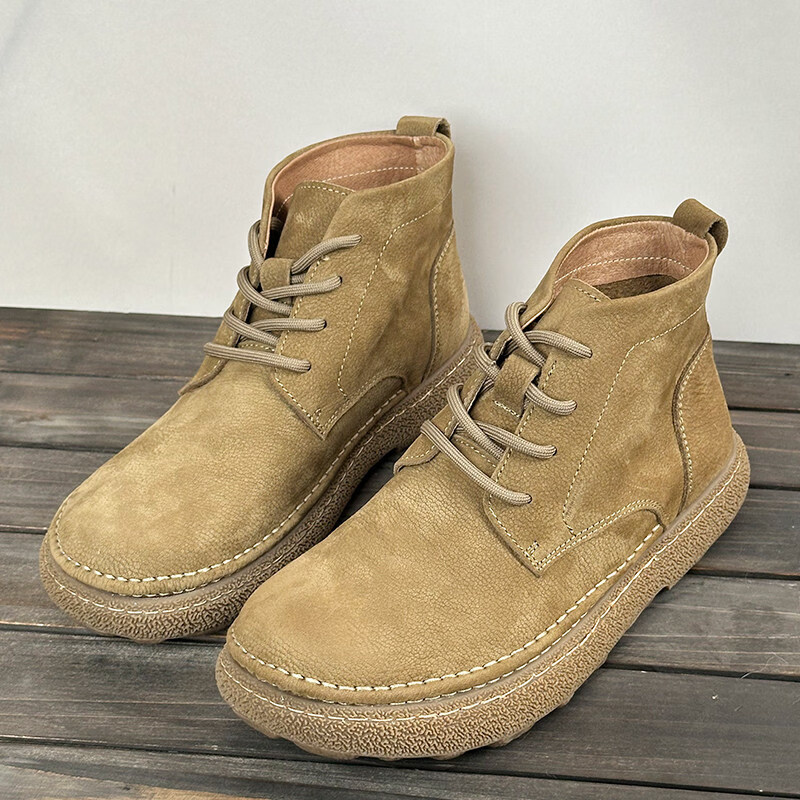 中帮马丁靴2025秋冬加绒保暖软皮软底系带工装短靴子 卡其色_加绒 45