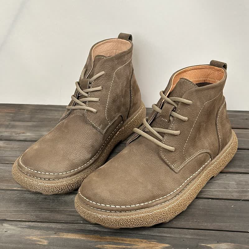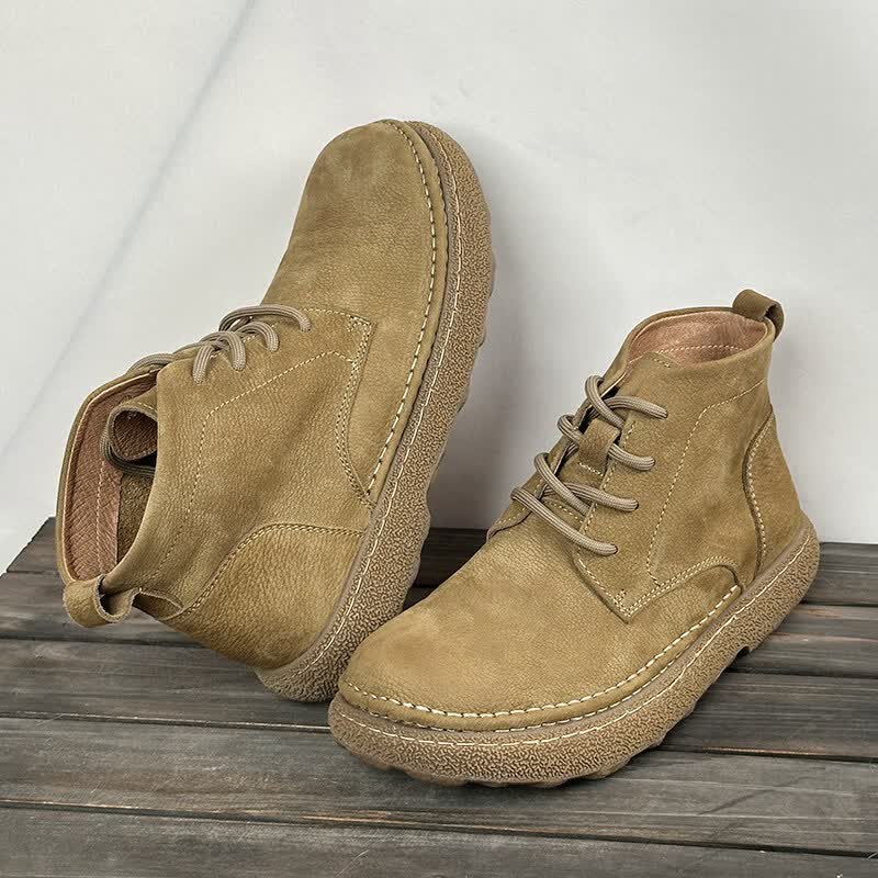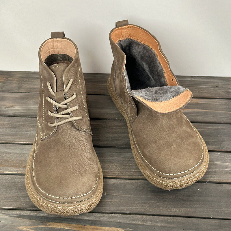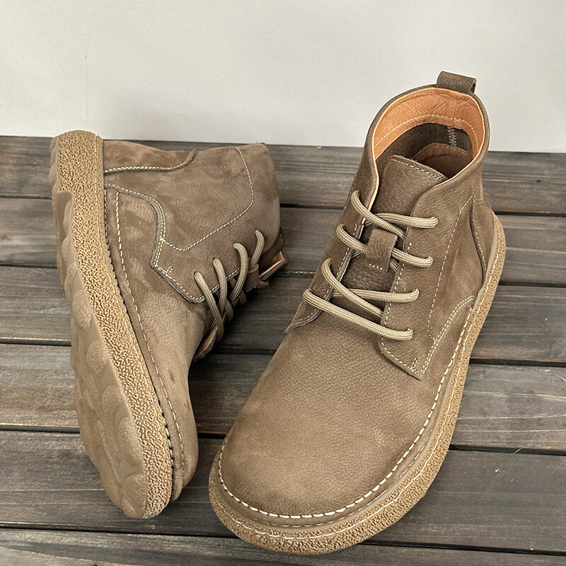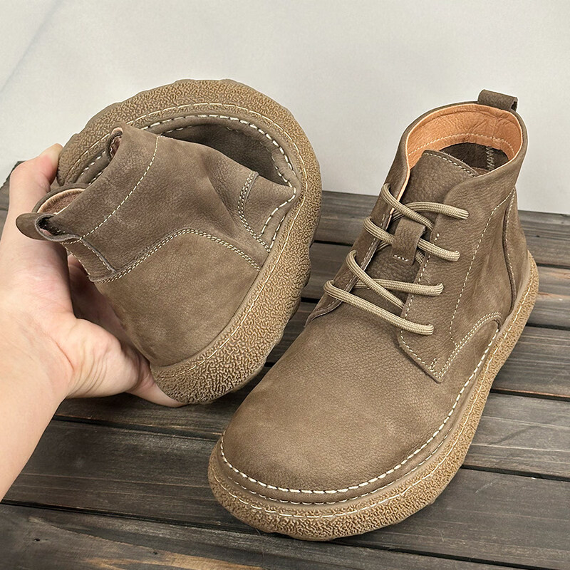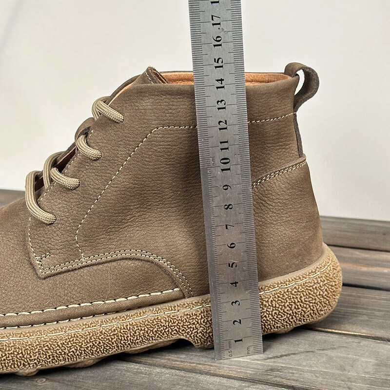 中帮马丁靴2025秋冬加绒保暖软皮软底系带工装短靴子 卡其色_加绒 45