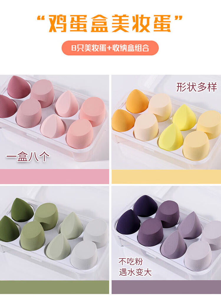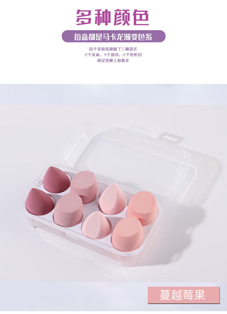 YAHLIGS粉扑/洗脸扑美妆扑4/8个装粉扑软化妆蛋带收纳盒 4#黑莓奶昔(8只) 1件