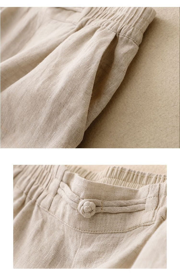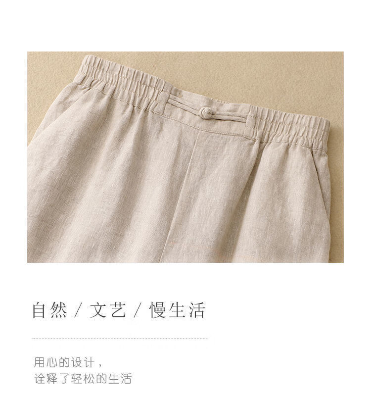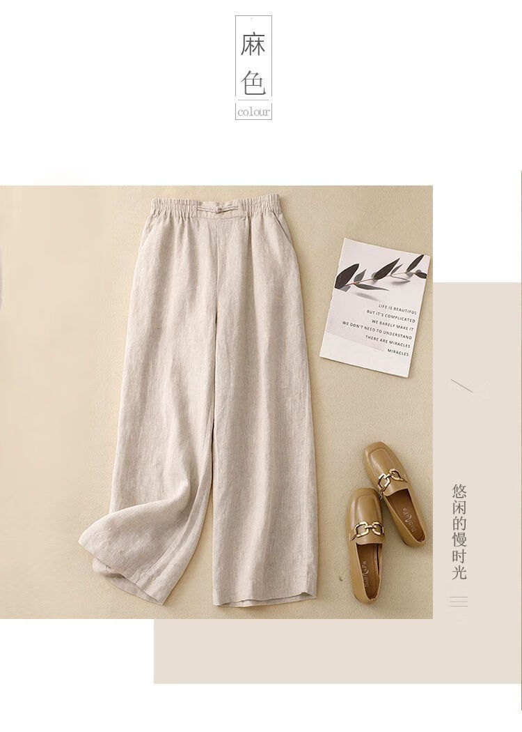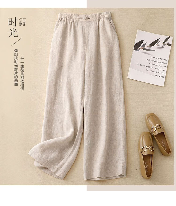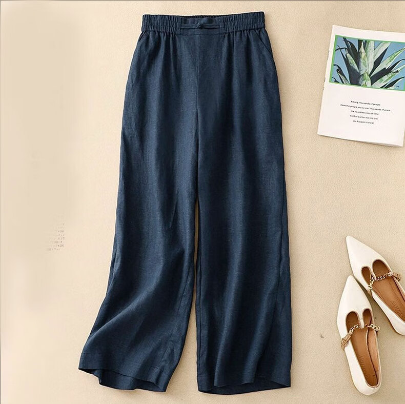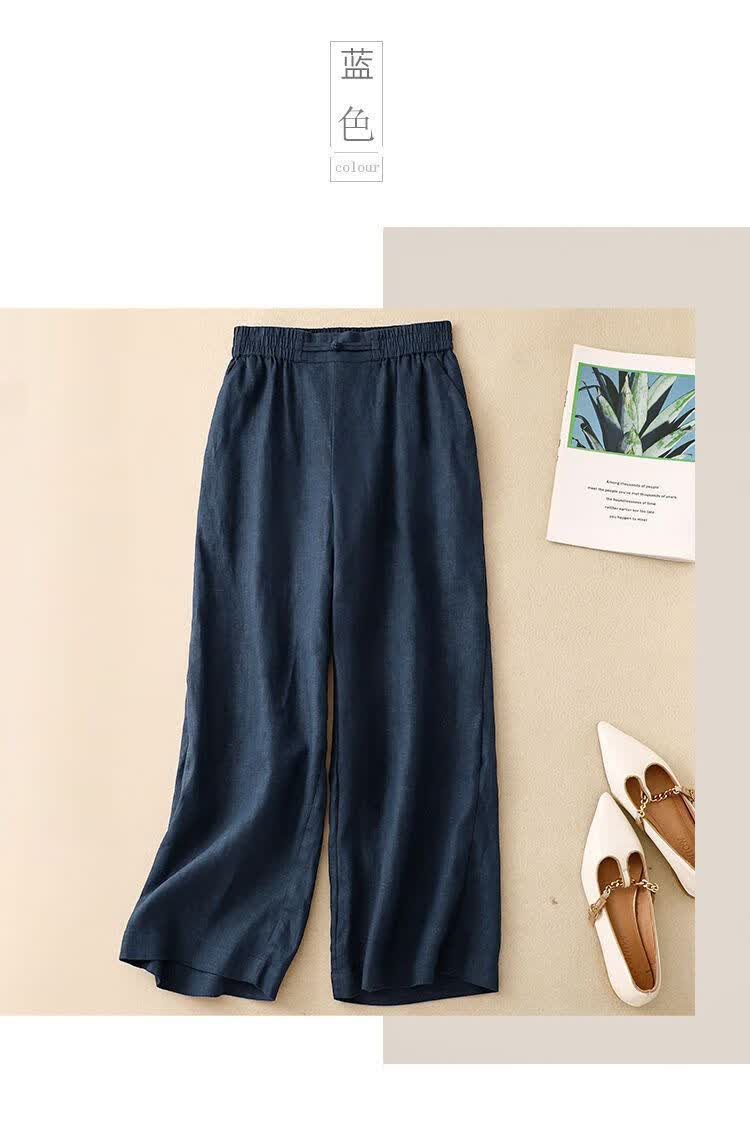 子牧棉麻夏装 女文艺休闲简约薄款宽松阔腿九分休闲裤9948 藏青色 M (建议90-115斤)