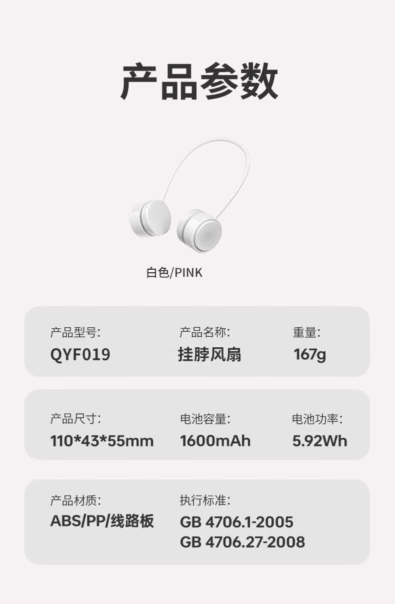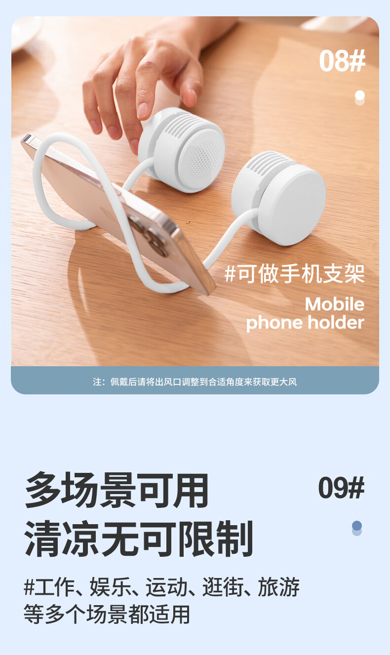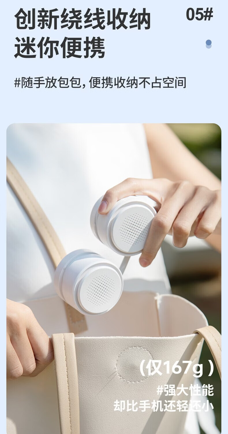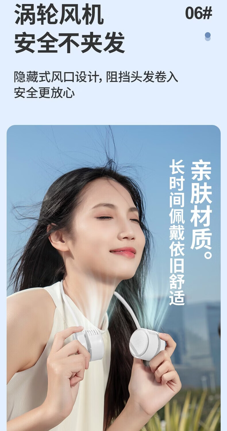 千喻挂脖懒人风扇迷你充电无叶收纳便携式usb颈脖子小型新款小风扇 QYF019冰川白