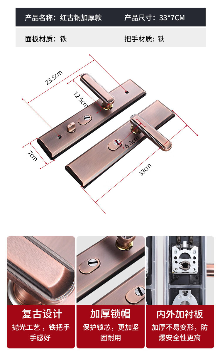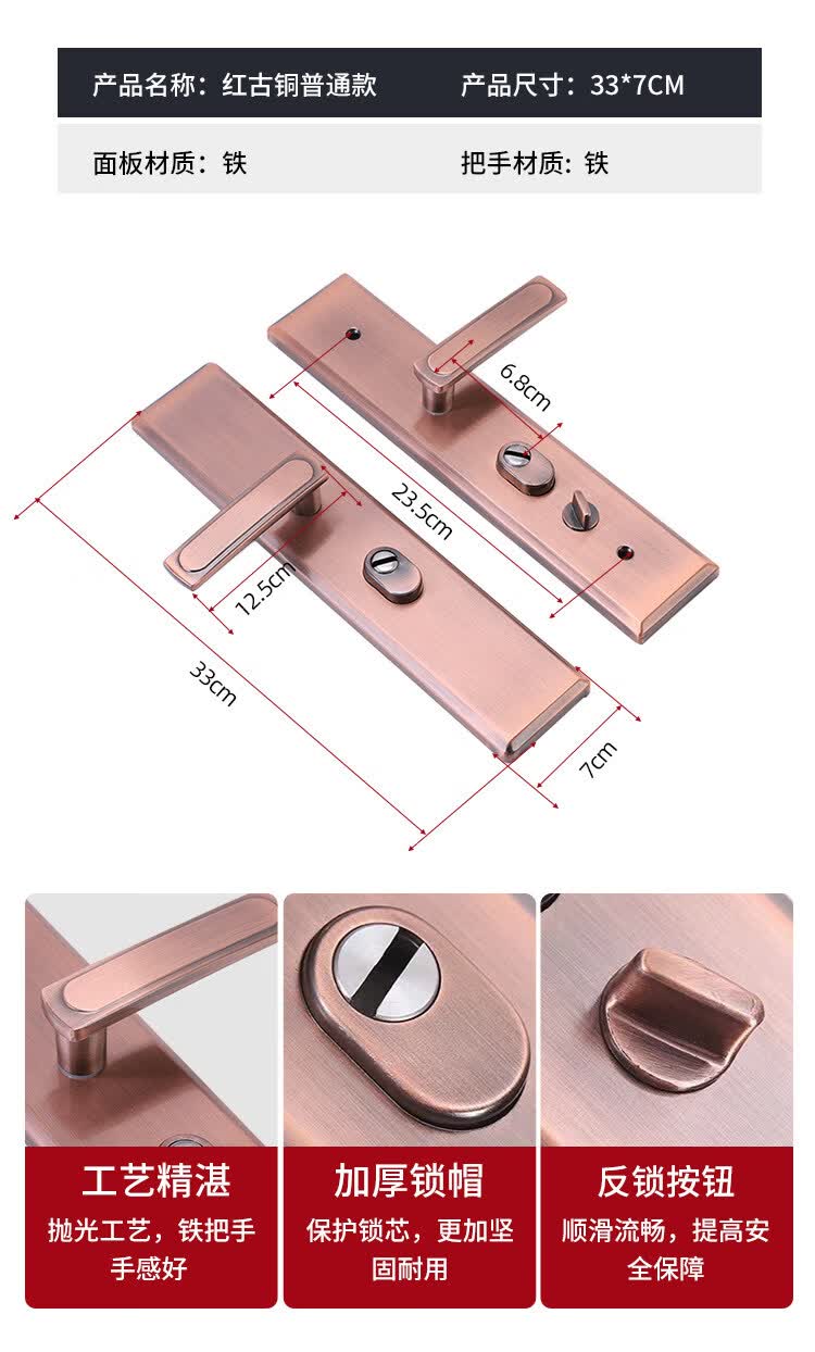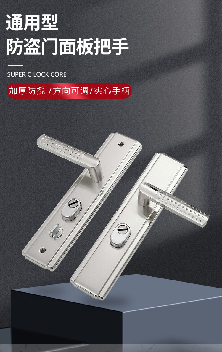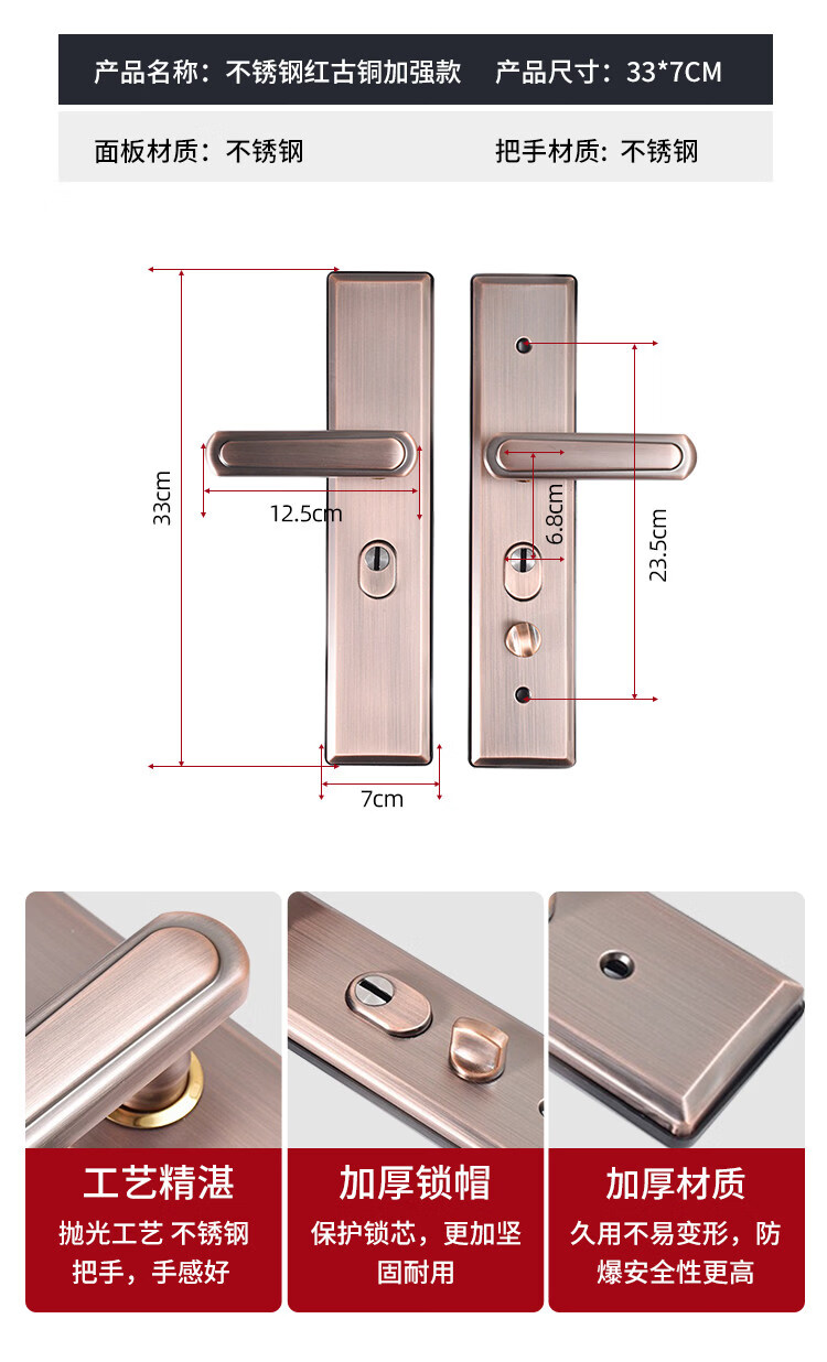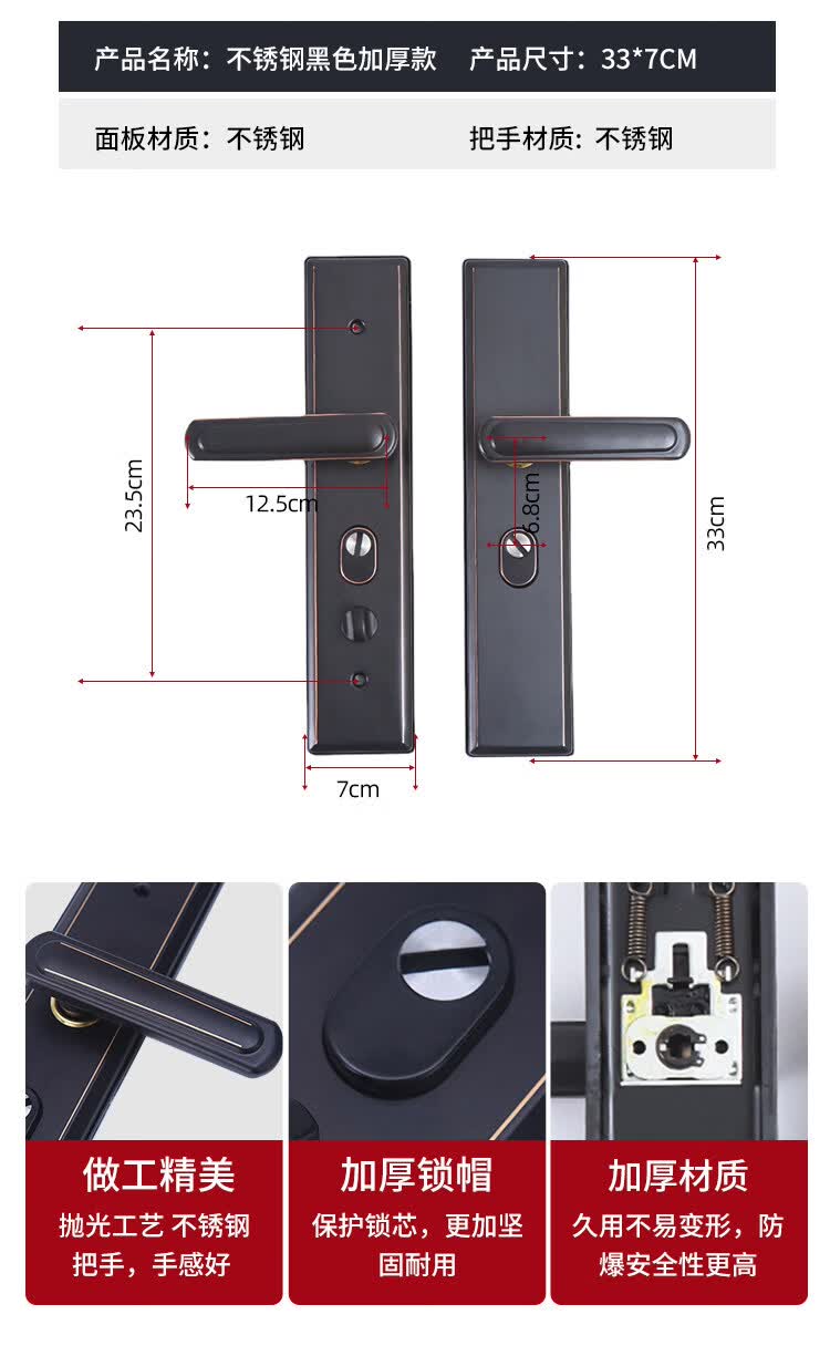 映浪不锈钢防盗门把手面板古铜家用通用型加厚防撬多功能老式大门拉手 不锈钢升级款把手面板【功能可调】 45-60mm