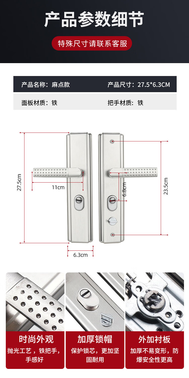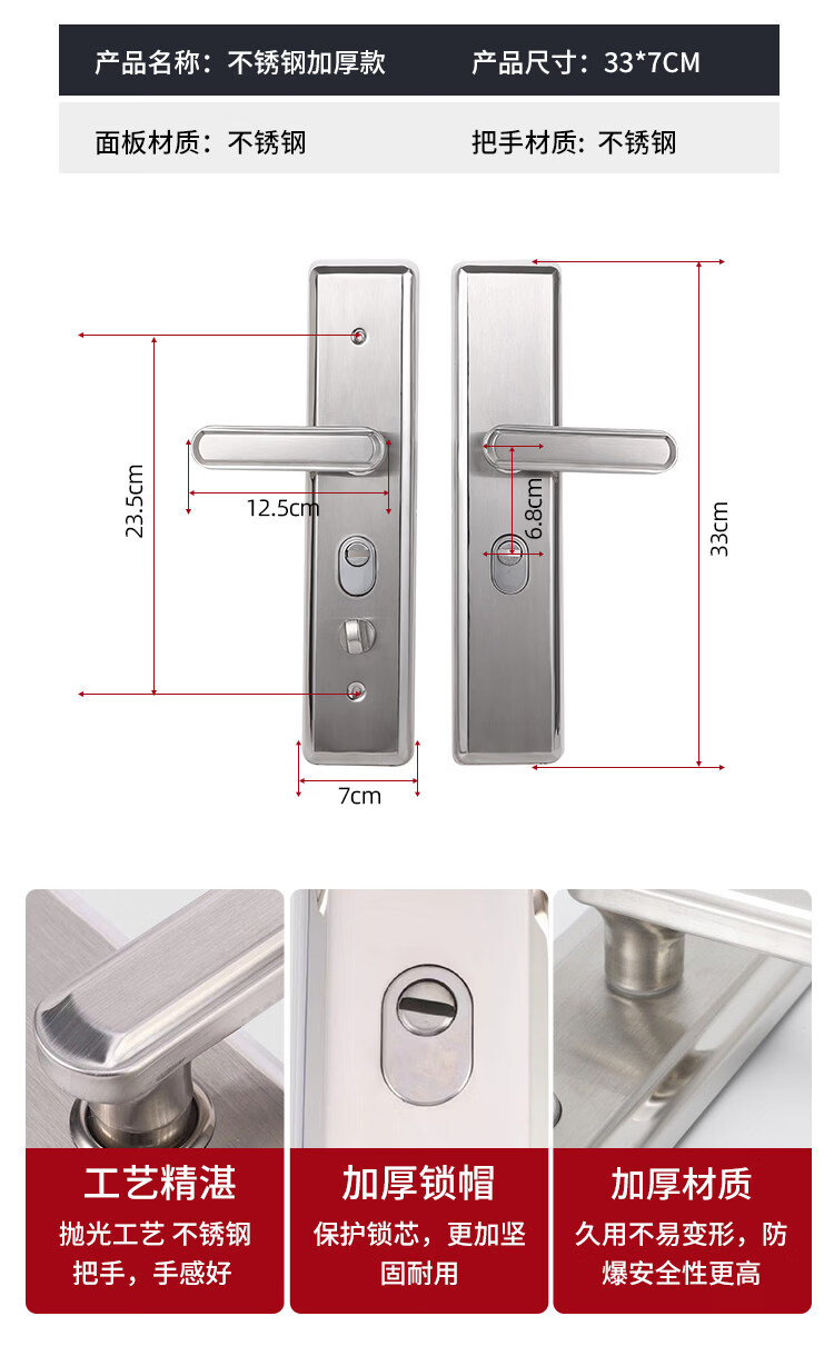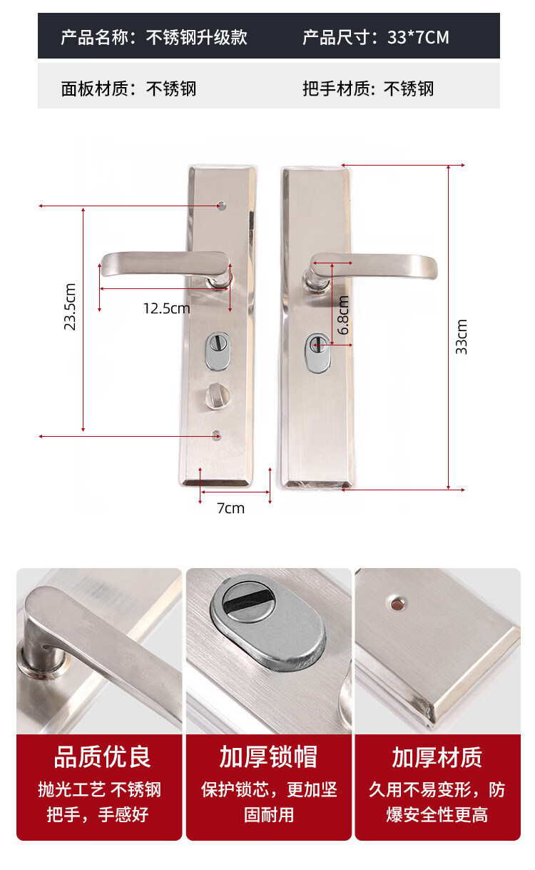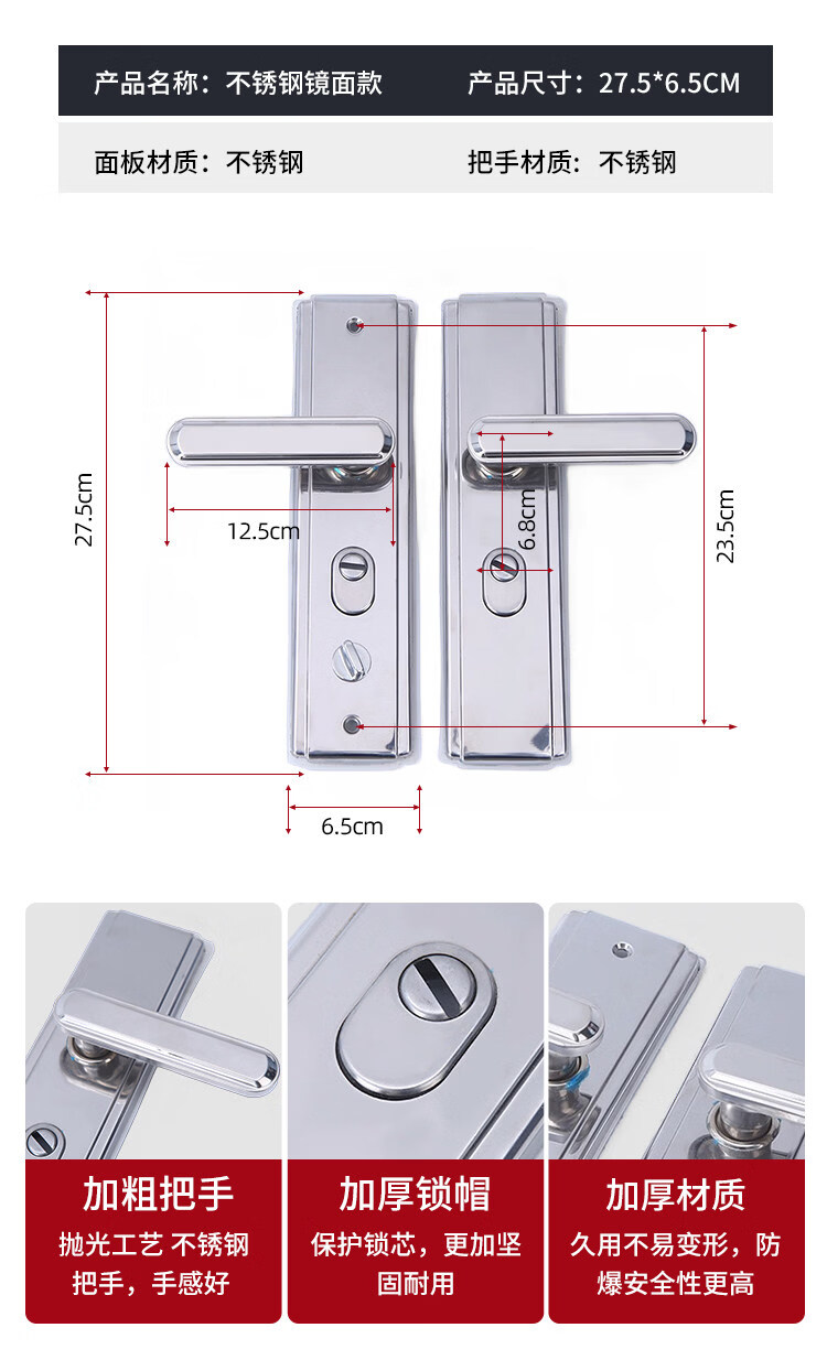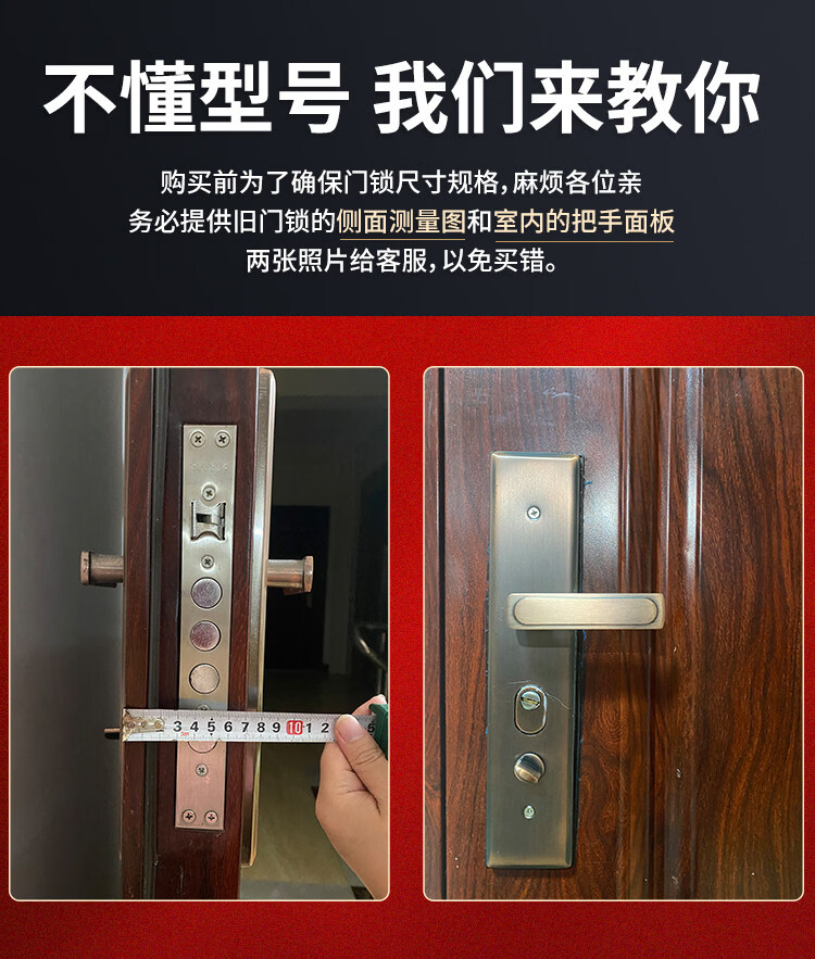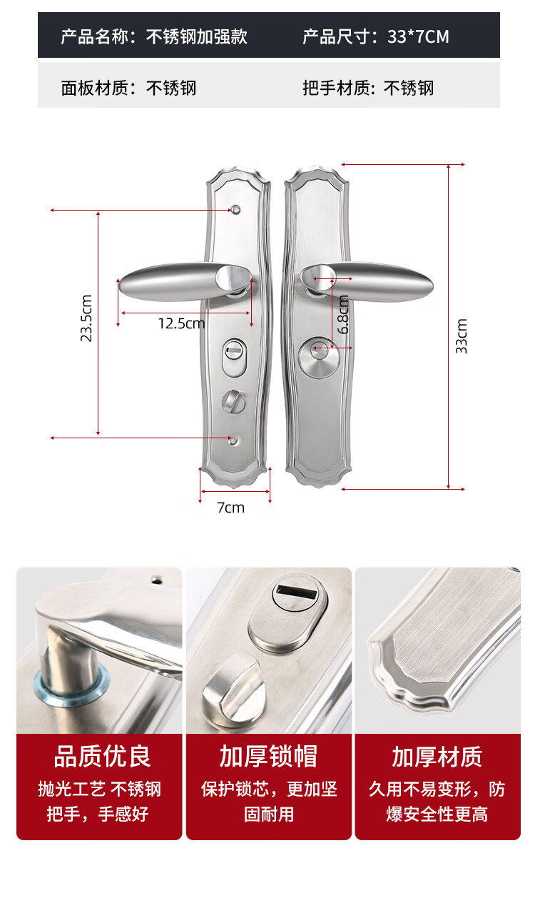 映浪不锈钢防盗门把手面板古铜家用通用型加厚防撬多功能老式大门拉手 不锈钢升级款把手面板【功能可调】 45-60mm