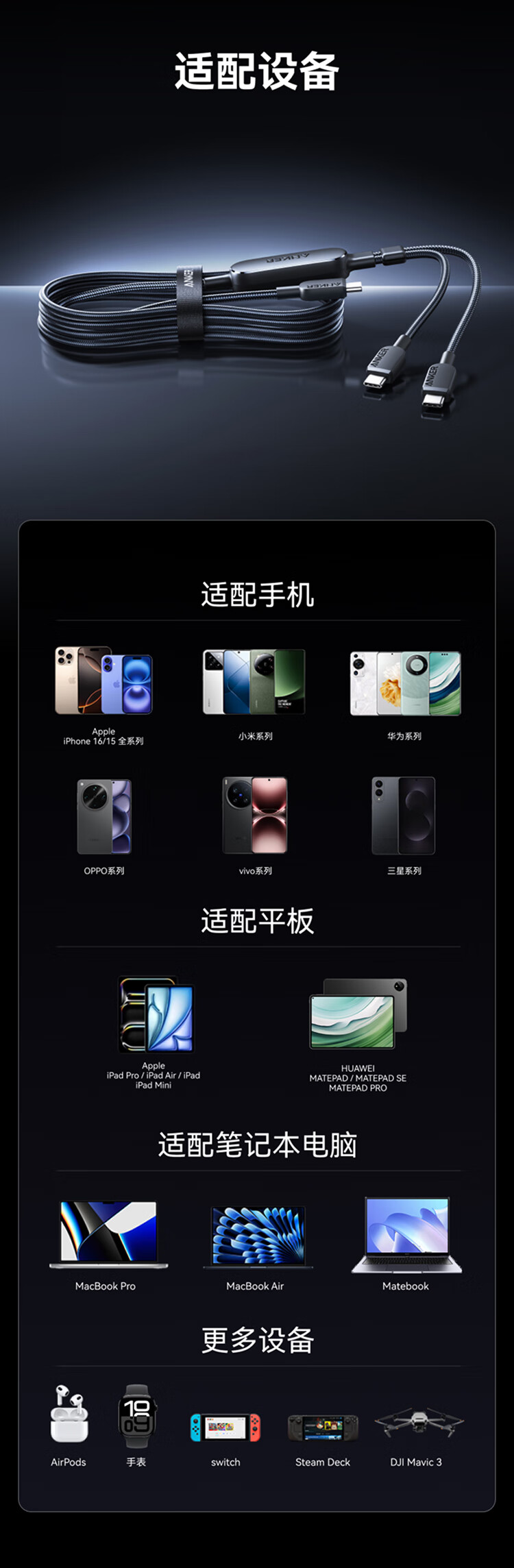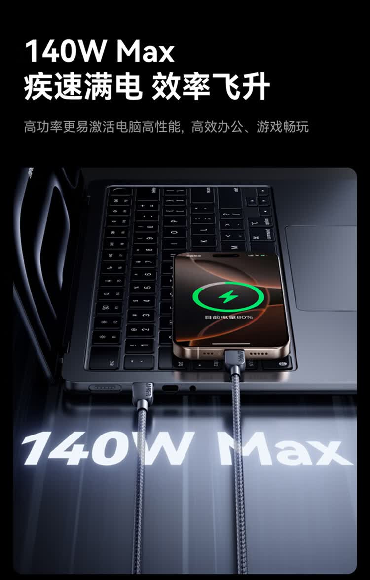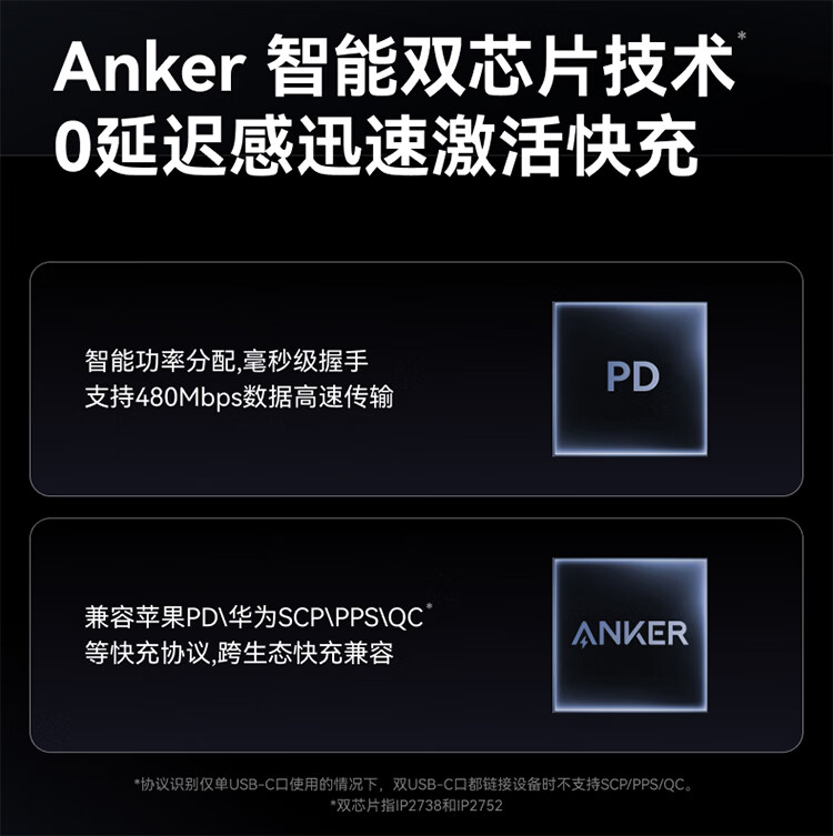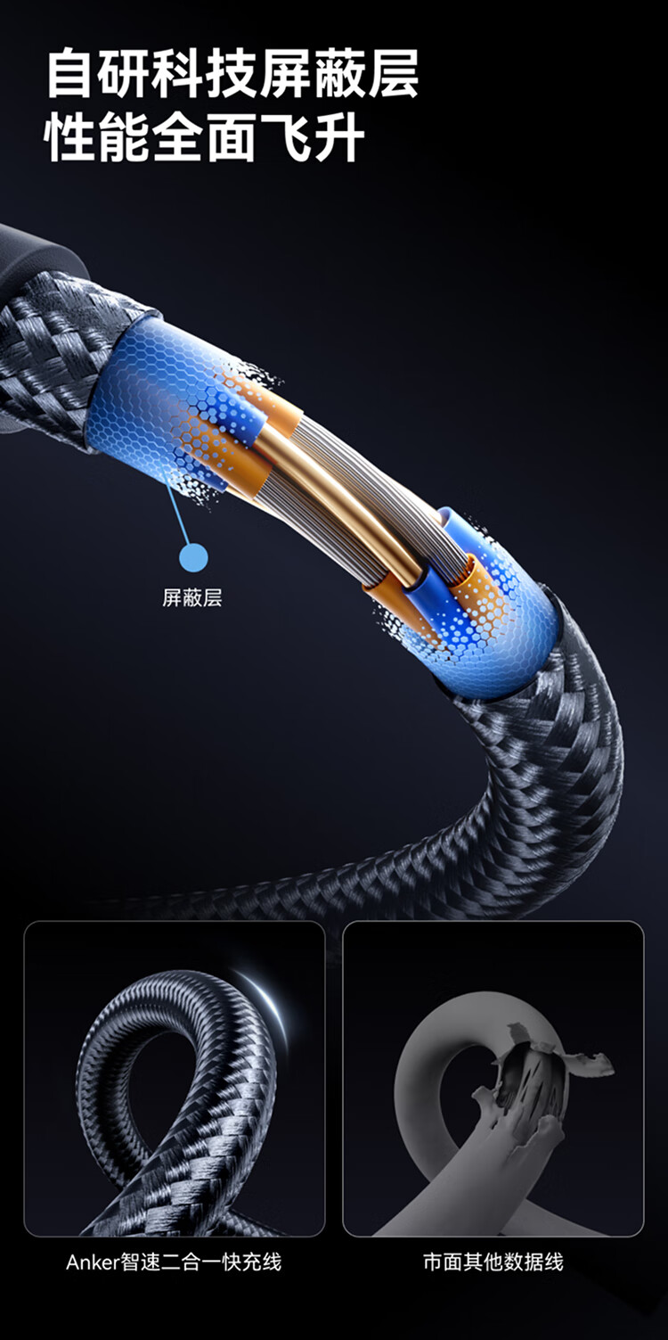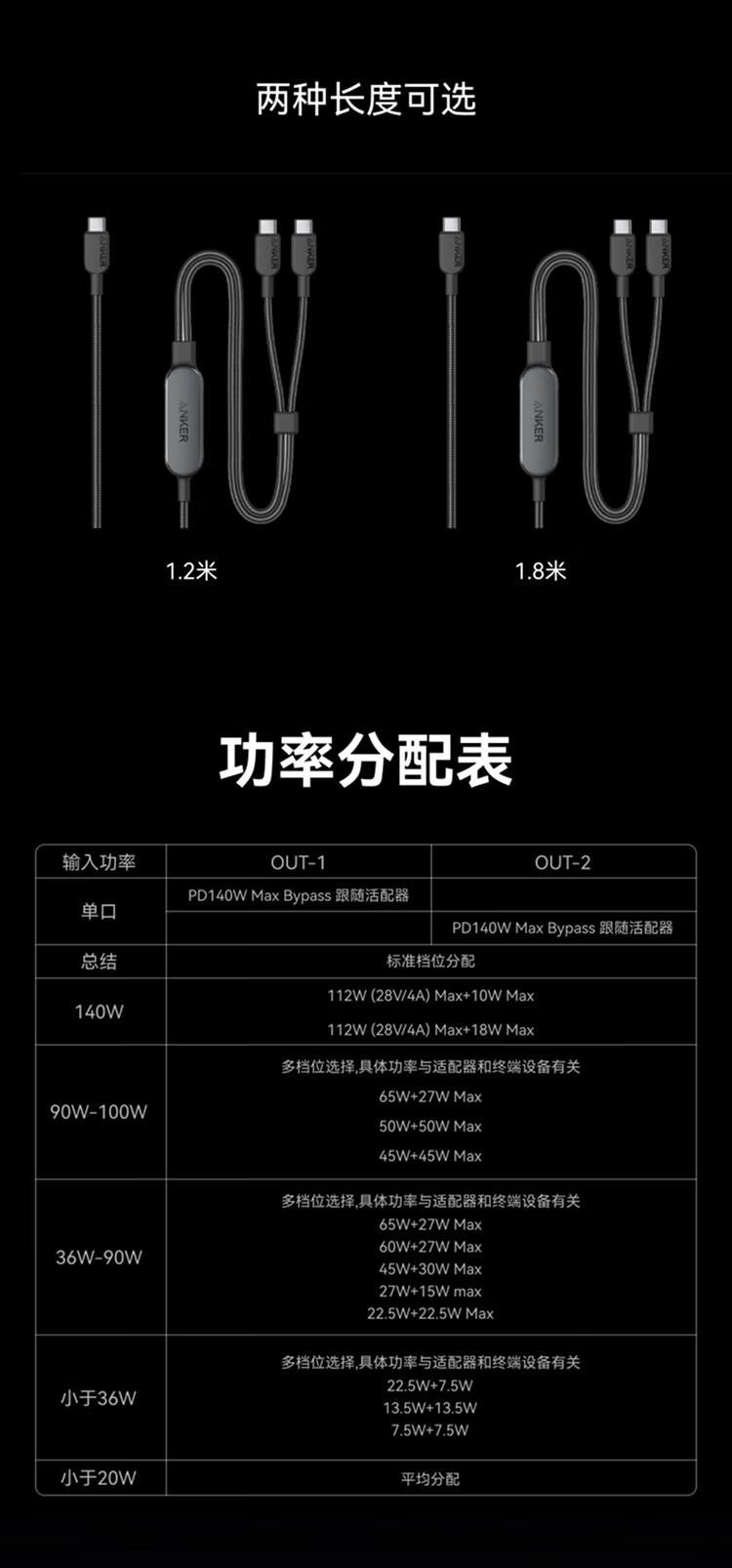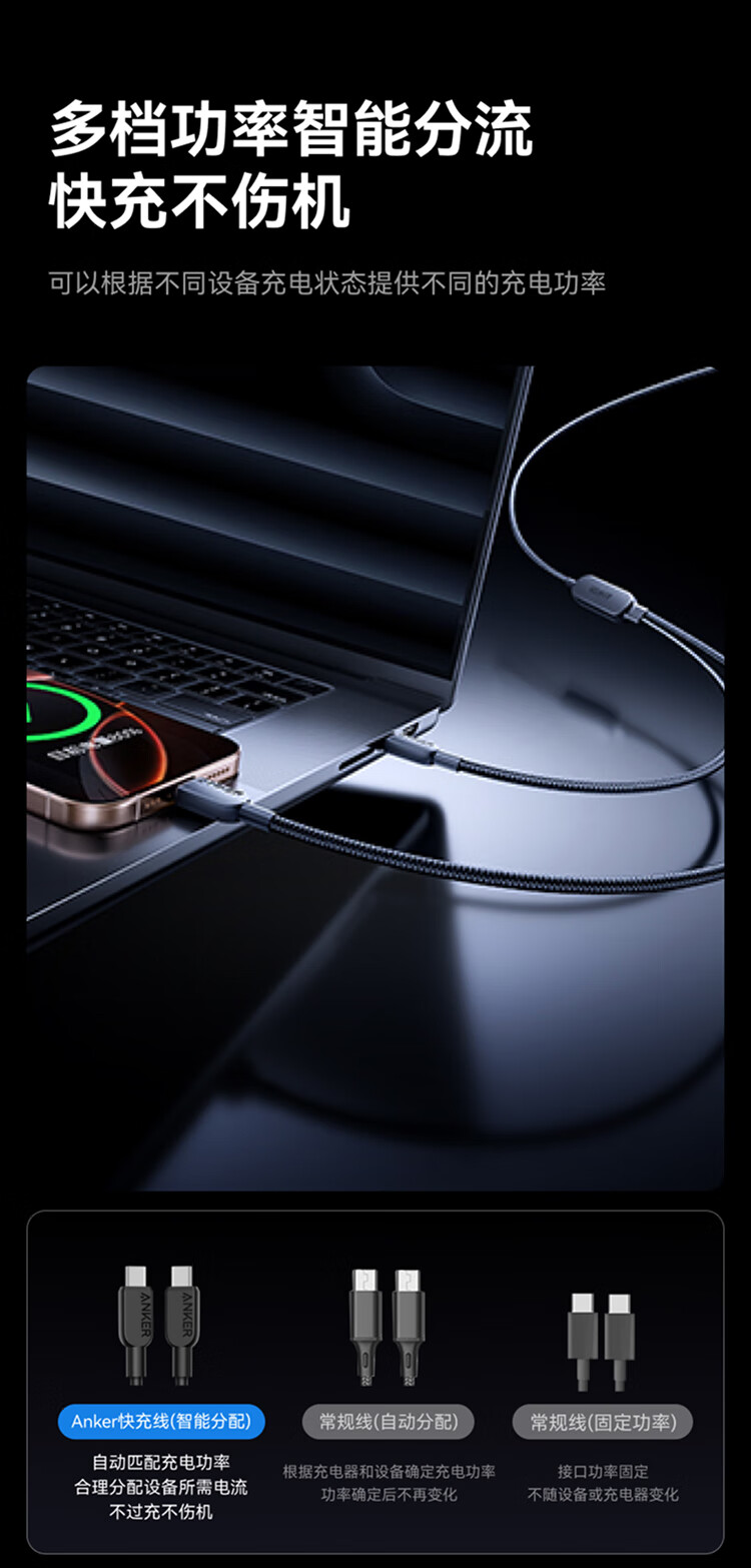 ANKER安克【二合一数据线】140W二合一双type-c数据线充电器充电宝车载充电线适用苹果17iPhone16华为 【一拖二】140W|1.2米|黑色