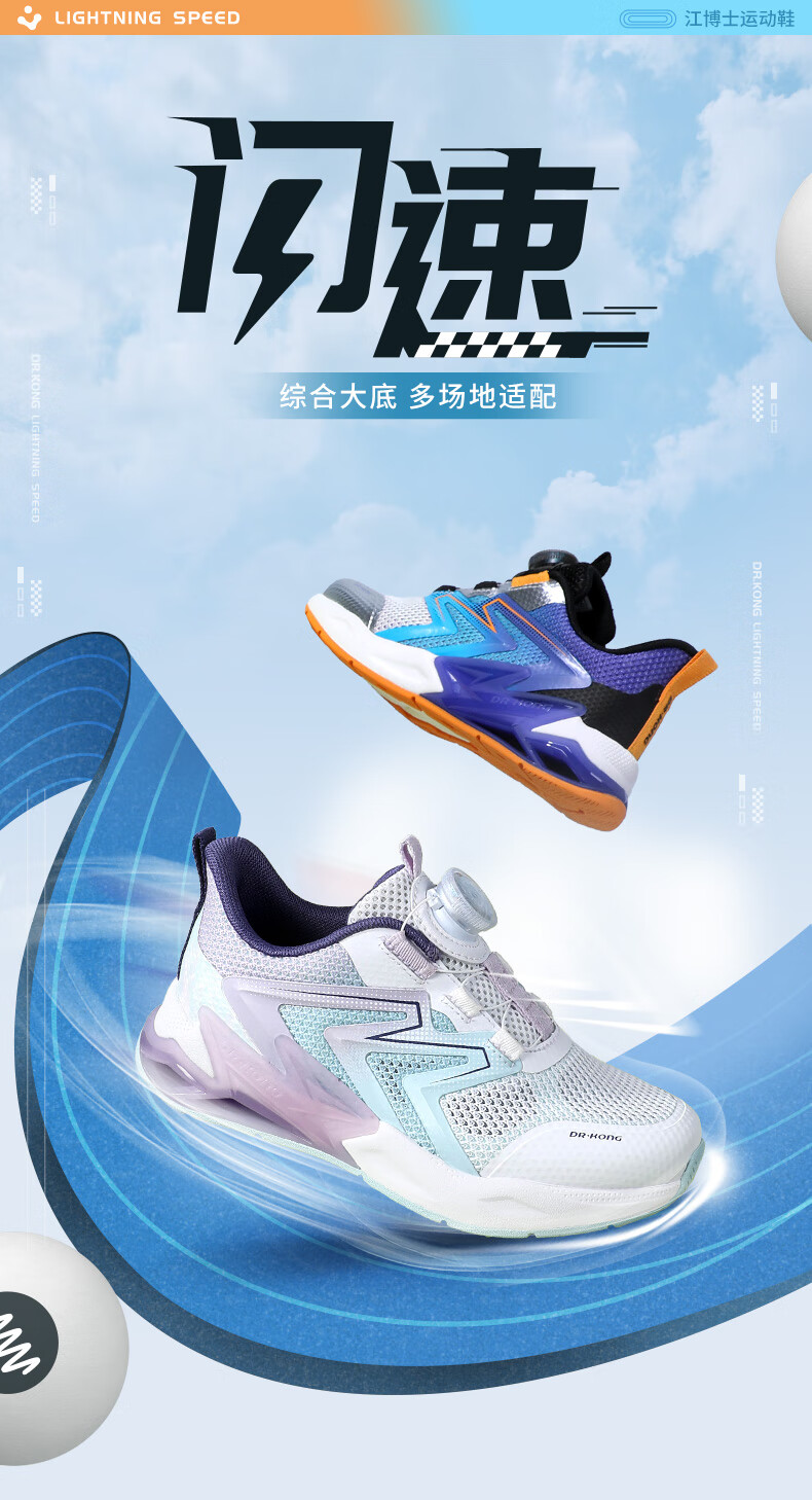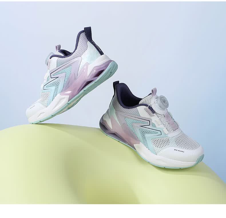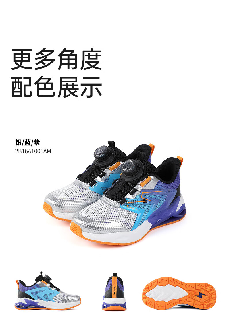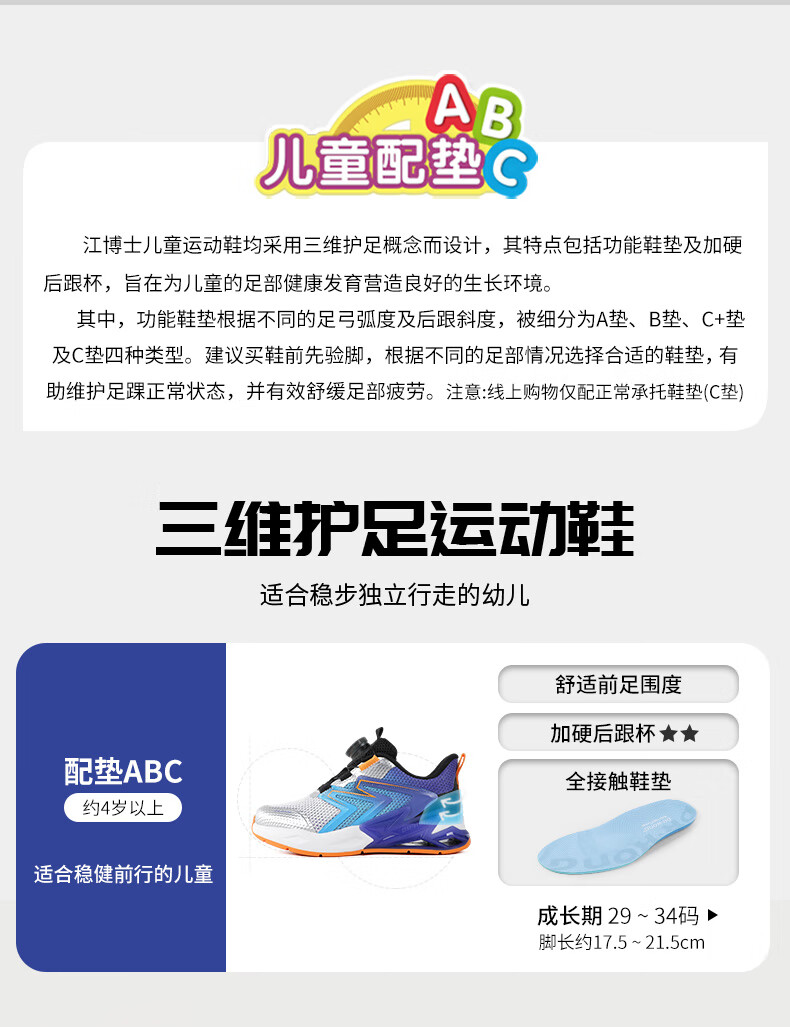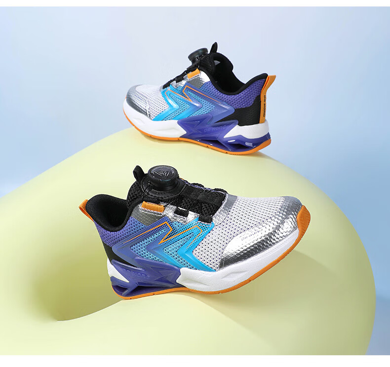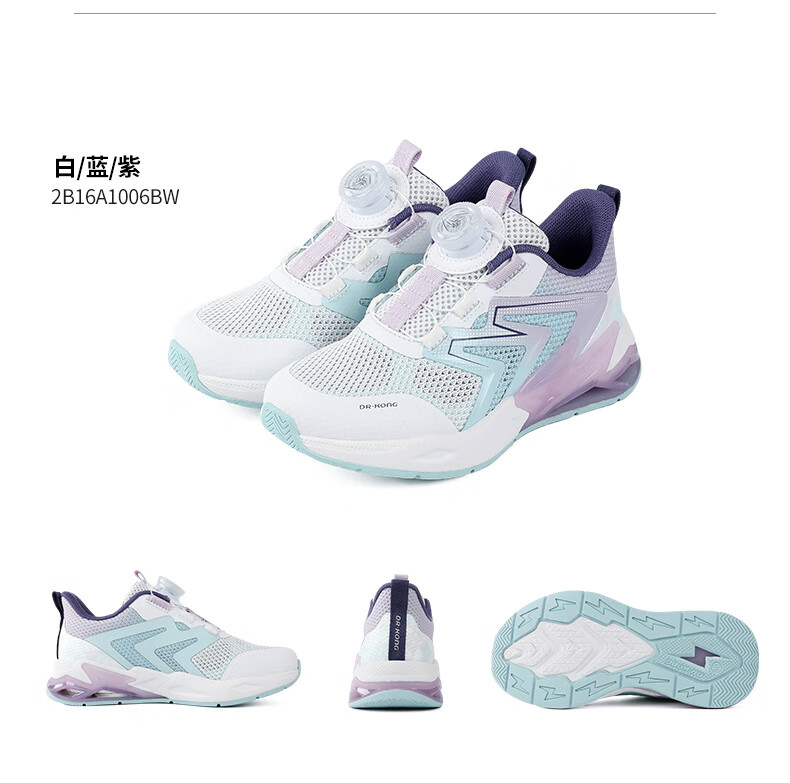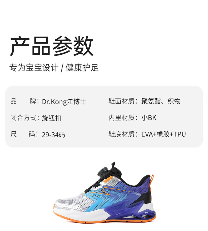江博士春季男女童潮流运动儿童鞋 免系鞋带旋钮扣透气学步鞋 白/蓝/紫 29 脚长约17.5-18.1