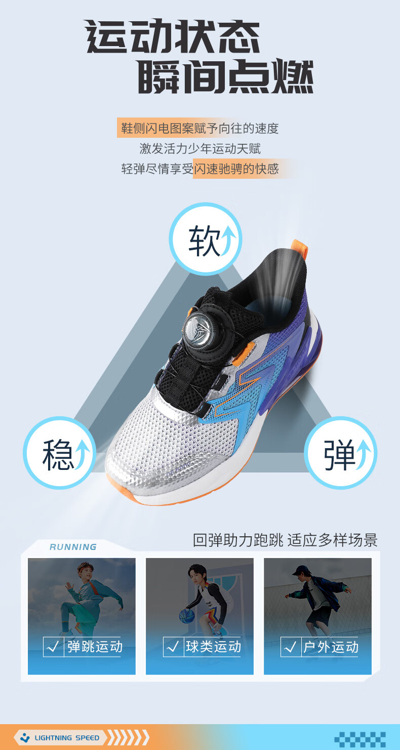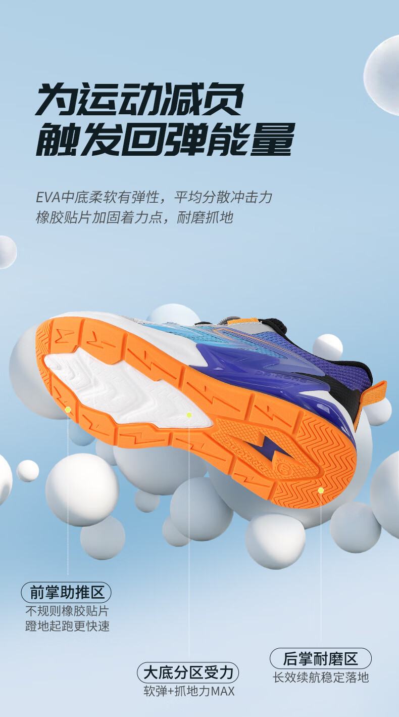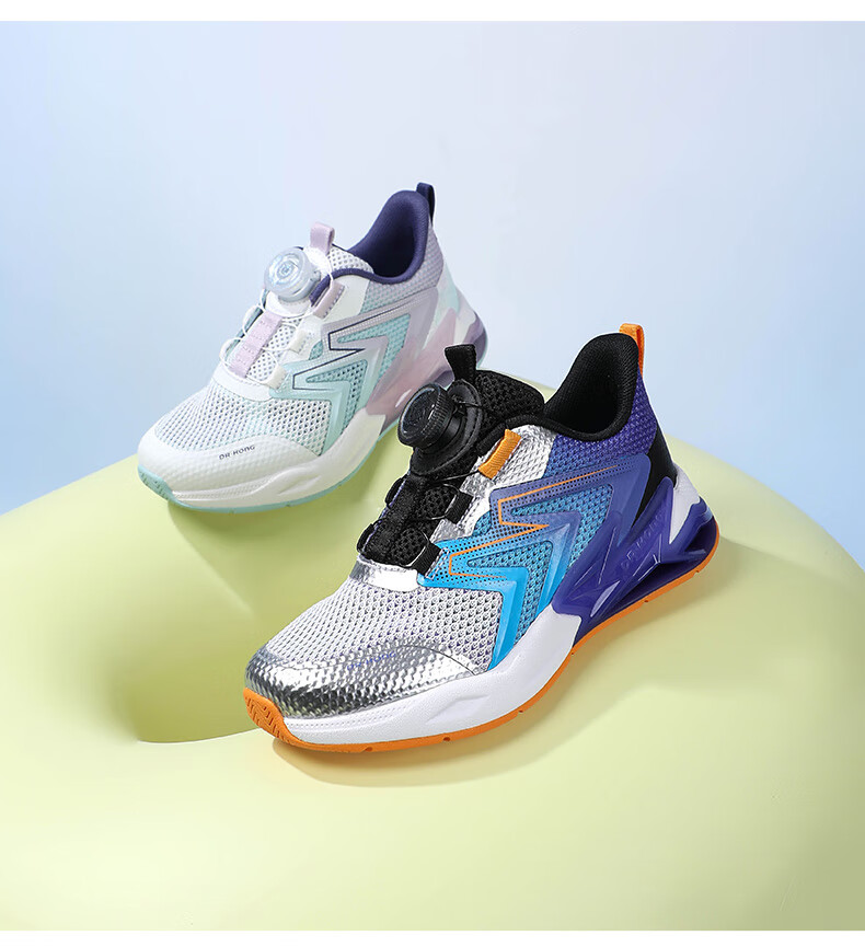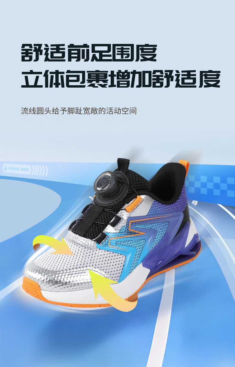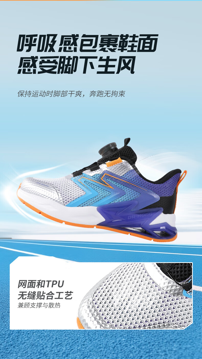 江博士春季男女童潮流运动儿童鞋 免系鞋带旋钮扣透气学步鞋 白/蓝/紫 29 脚长约17.5-18.1