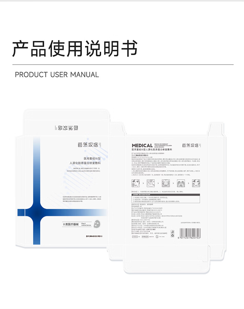 自然攻略械字号医用重组III型人源化胶原蛋白修复敷料贴创面术后愈合 蓝膜 【10盒装】年货囤货装