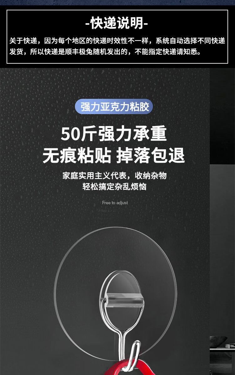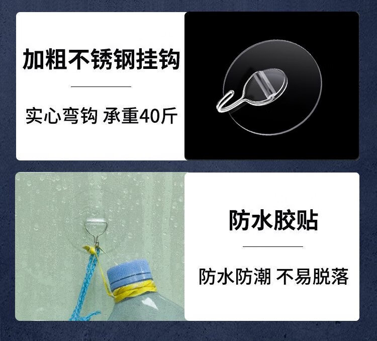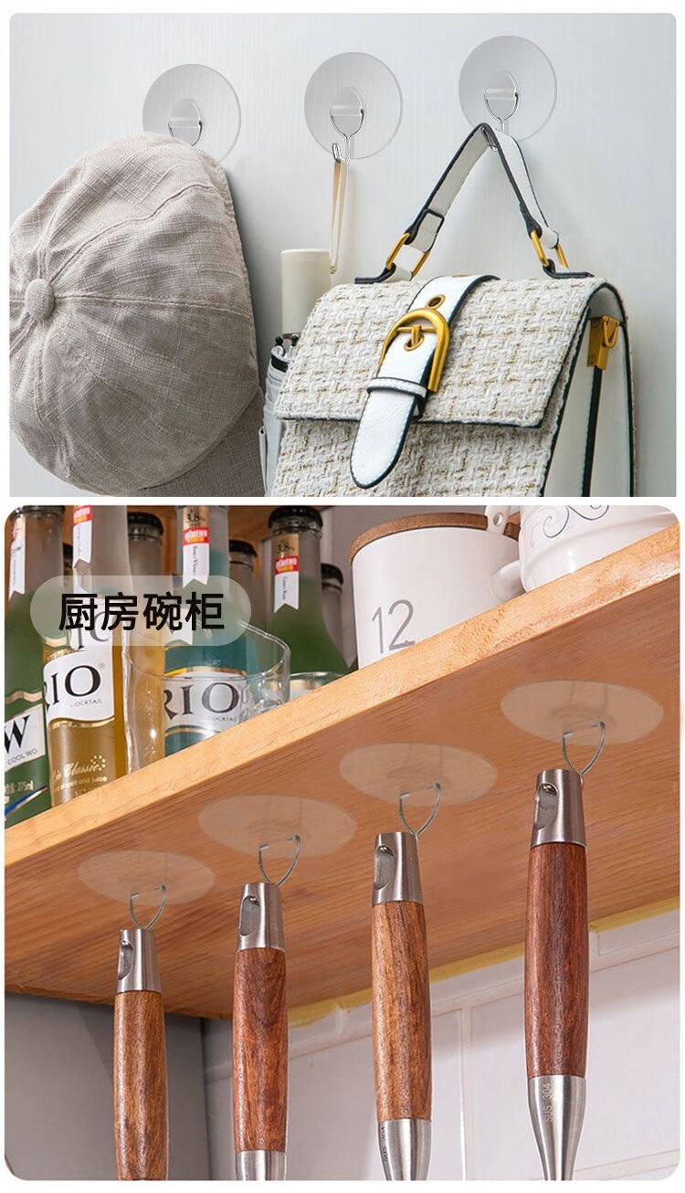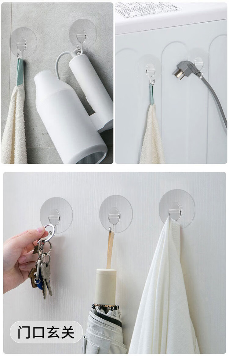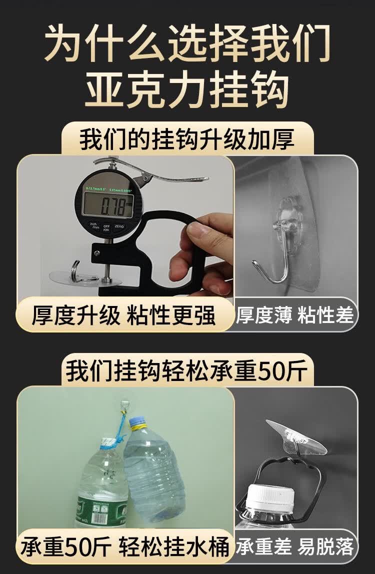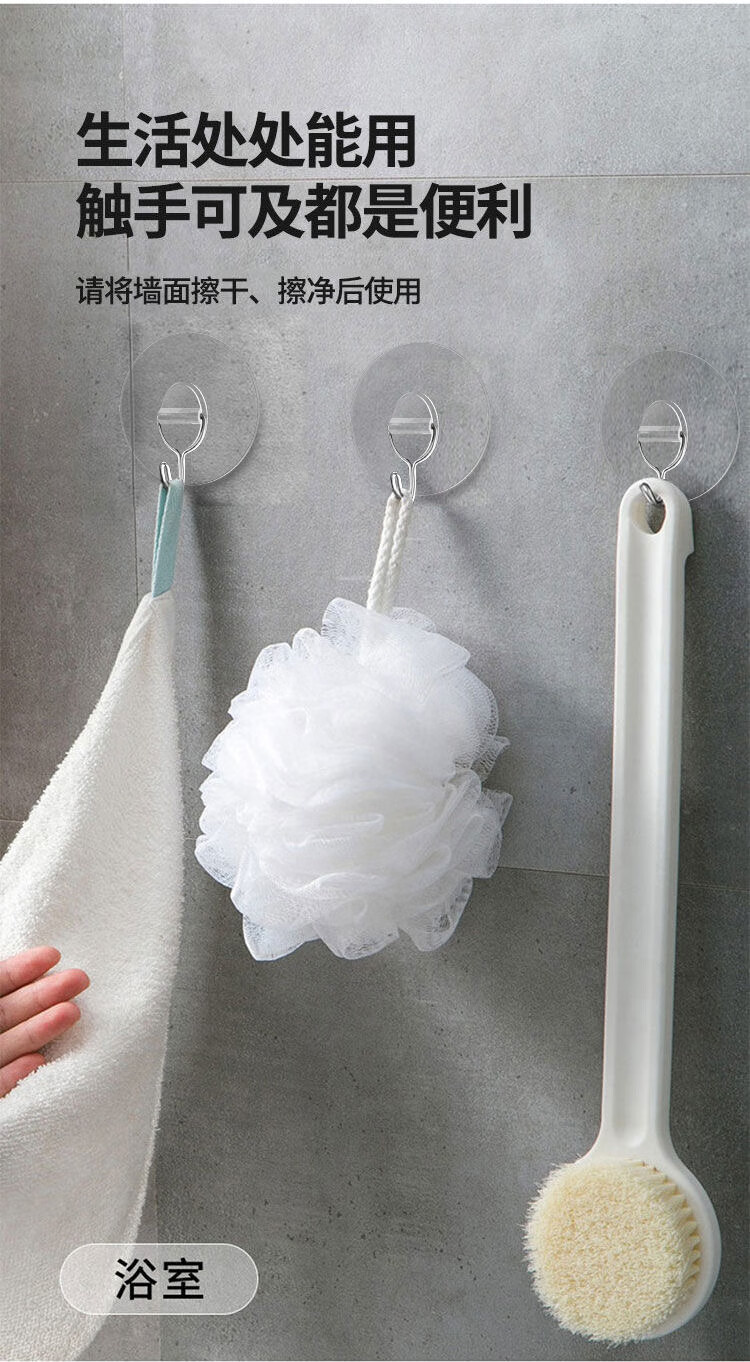 猪猪强免打孔自粘强力粘钩透明隐形无痕挂钩厨房浴室卫生间拖把毛巾挂钩 加大加厚强力挂钩78MM【50个装】