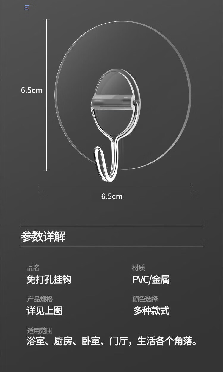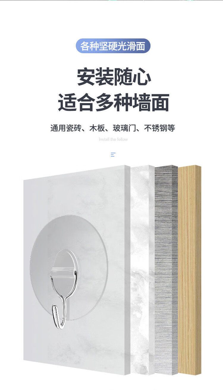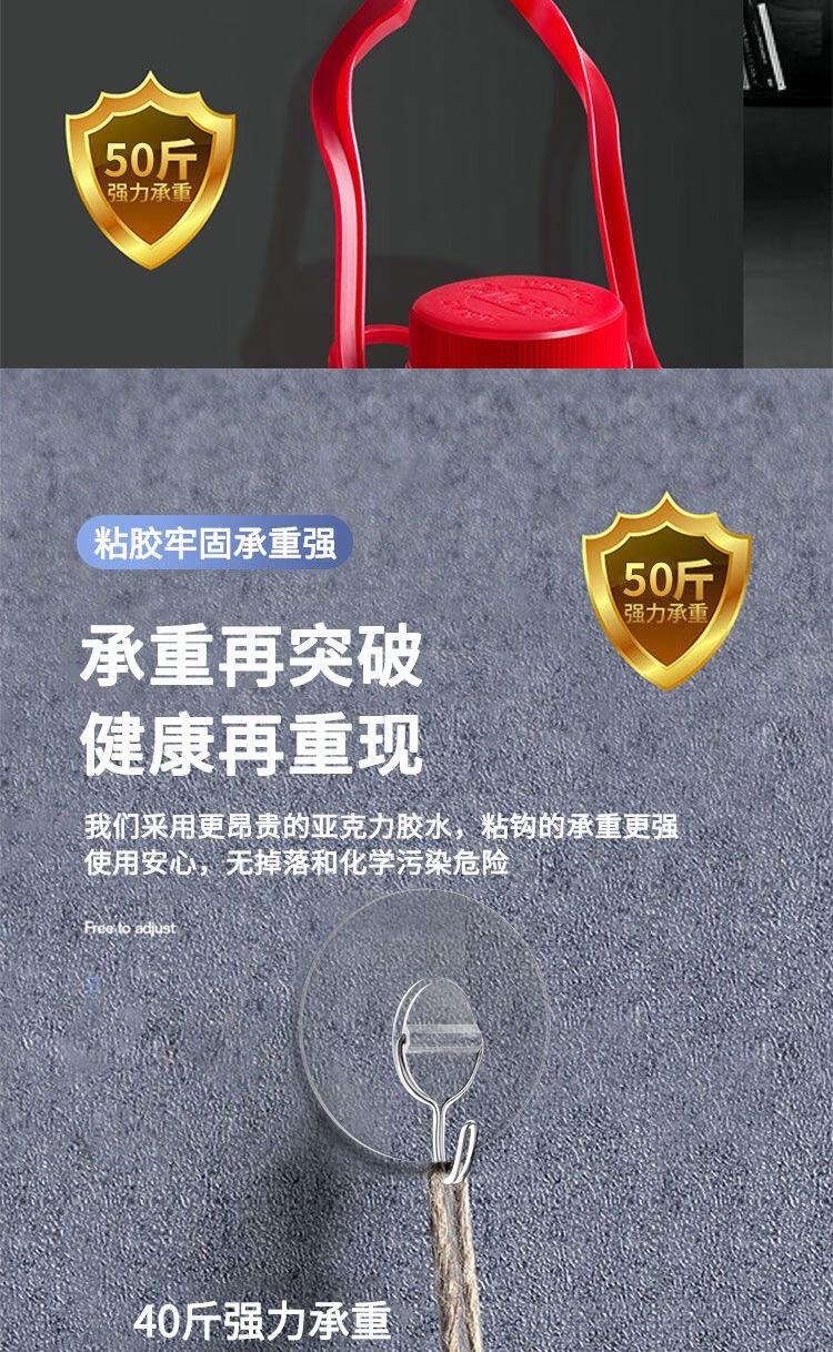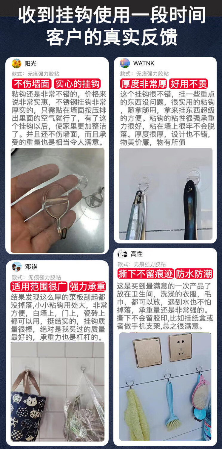 猪猪强免打孔自粘强力粘钩透明隐形无痕挂钩厨房浴室卫生间拖把毛巾挂钩 加大加厚强力挂钩78MM【50个装】