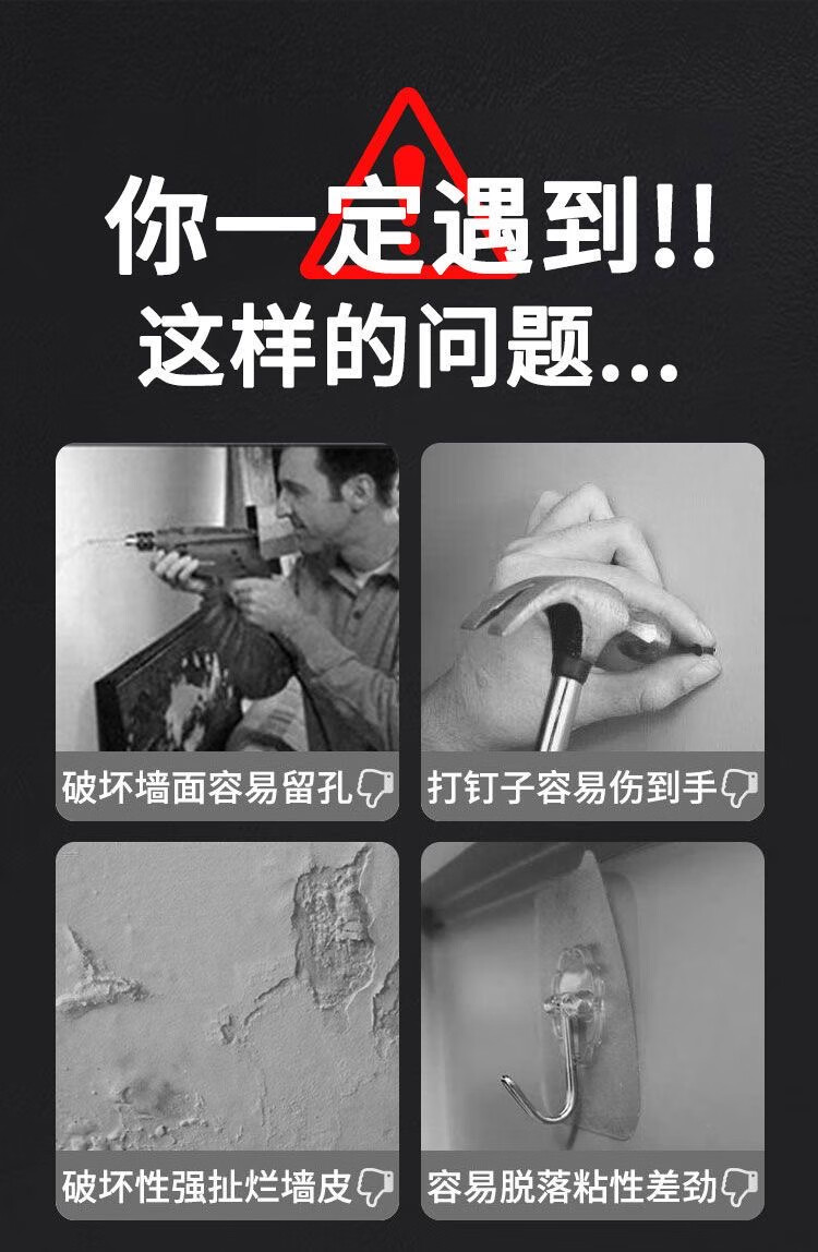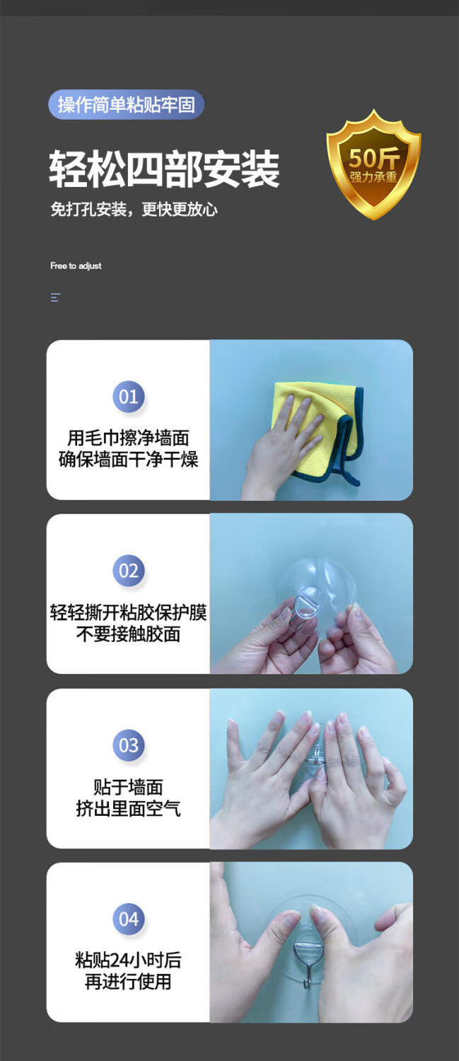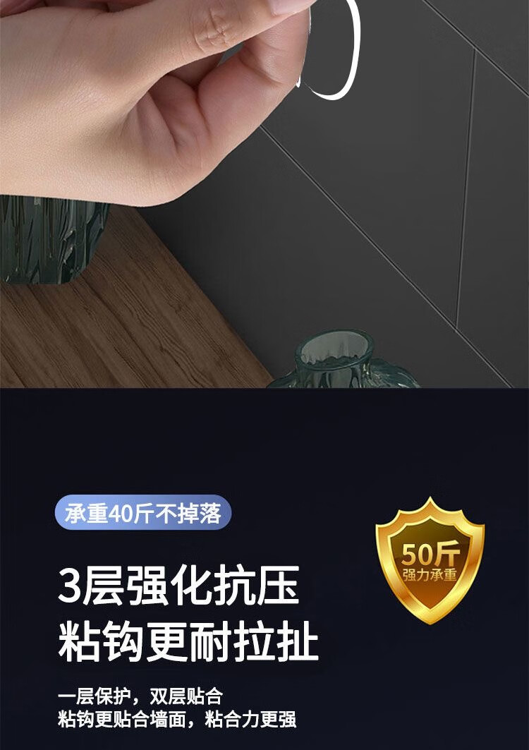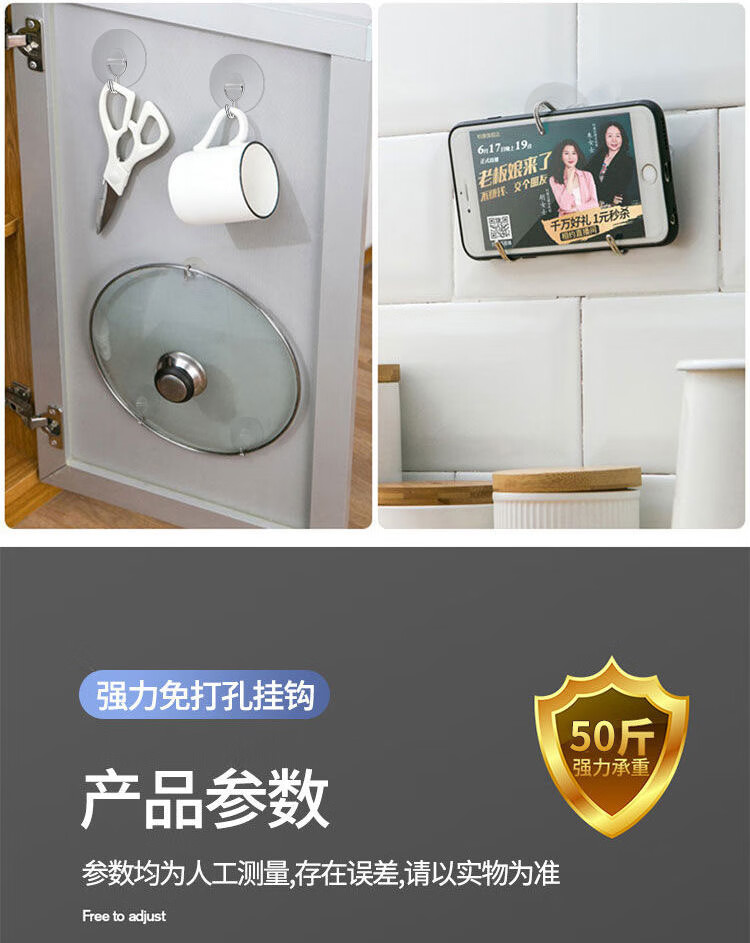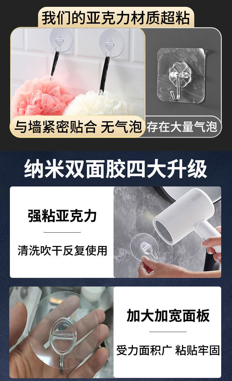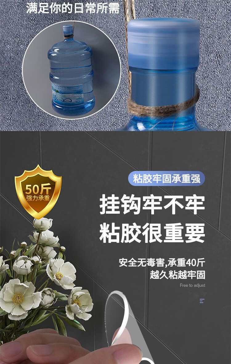 猪猪强免打孔自粘强力粘钩透明隐形无痕挂钩厨房浴室卫生间拖把毛巾挂钩 加大加厚强力挂钩78MM【50个装】