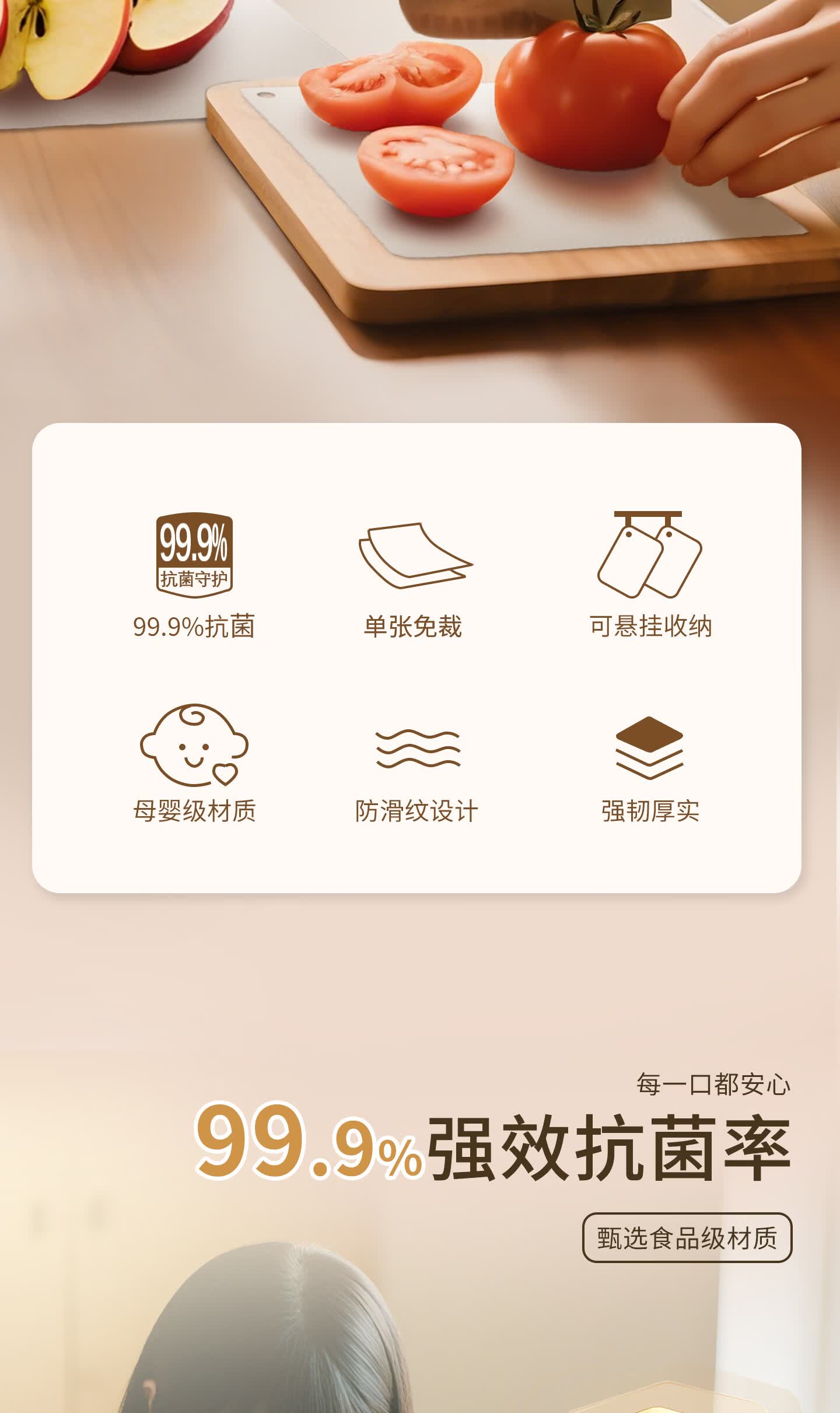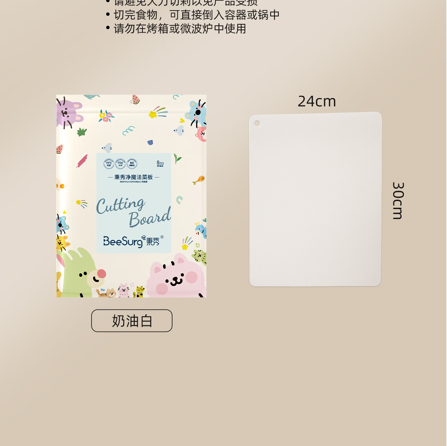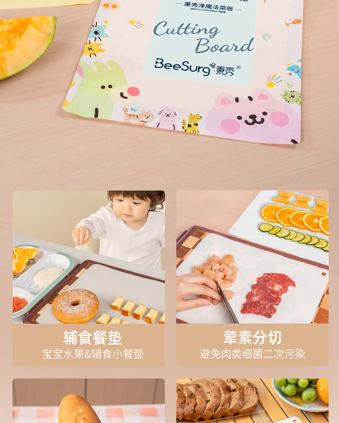 秉秀抗菌菜板砧板 厨房用具防滑垫纸切菜肉水果菜板垫 【送挂钩+贴纸】宝宝辅食专用菜板(2包16片)