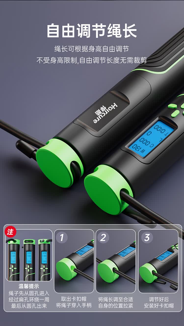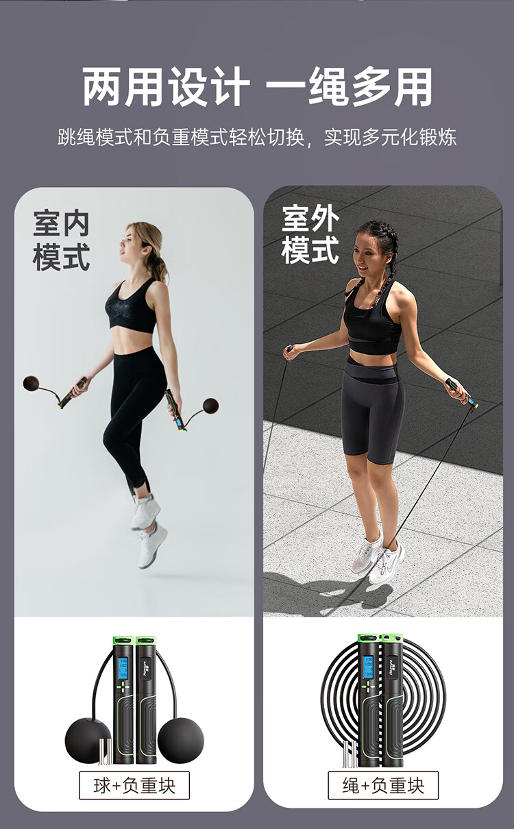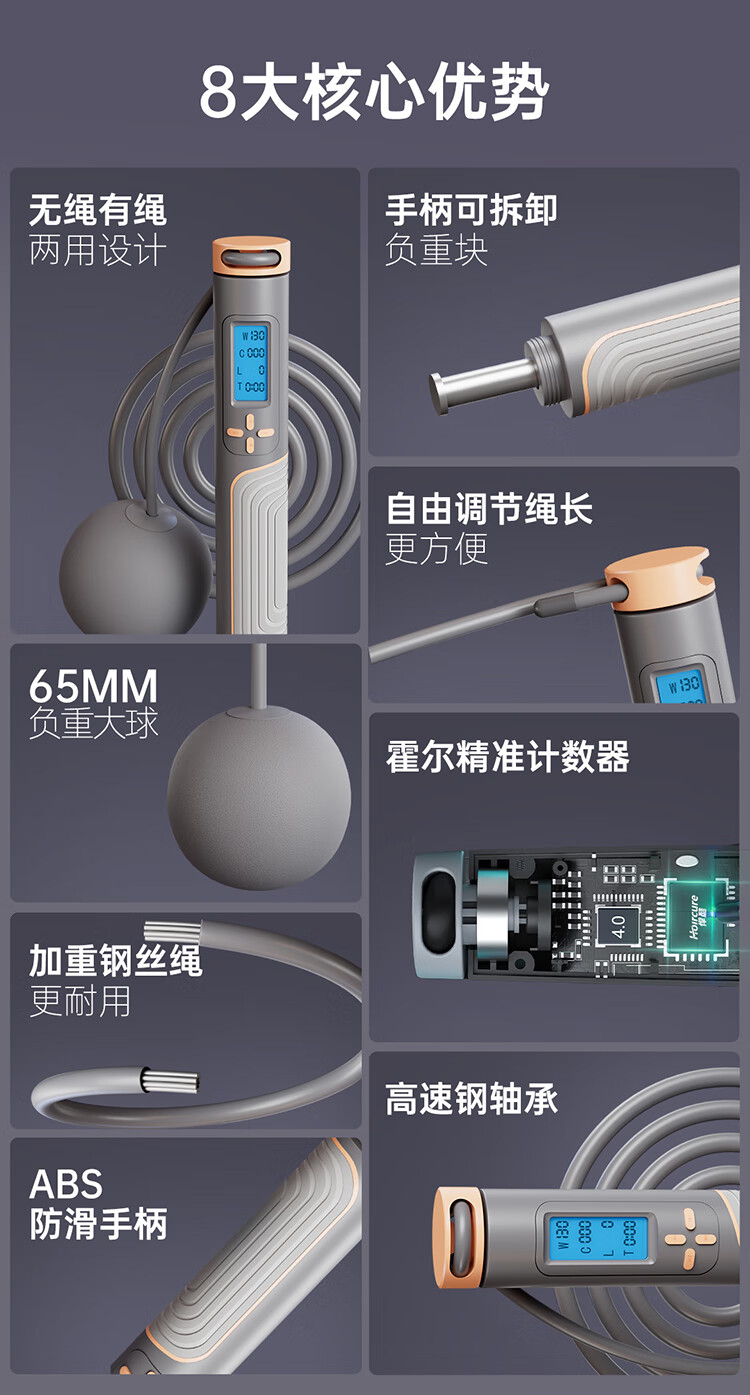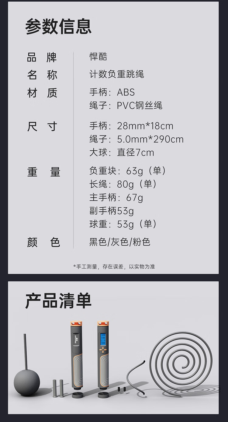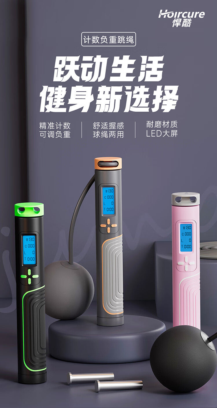 悍酷(Hoircure)跳绳成人计数中考考试学生儿童跳绳健身运动负重专用钢丝绳 两用负重/强力减肥/大球+长绳/灰
