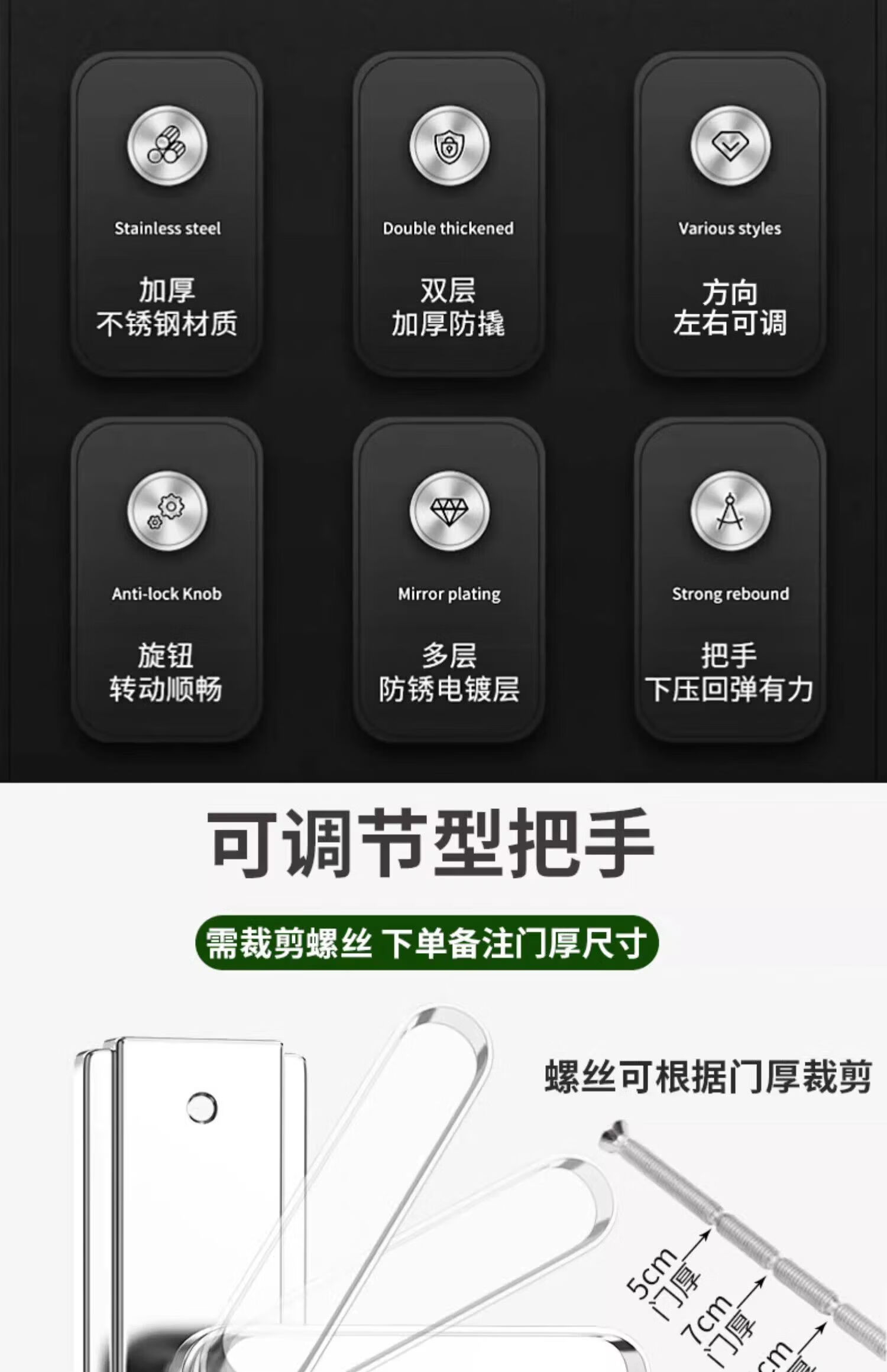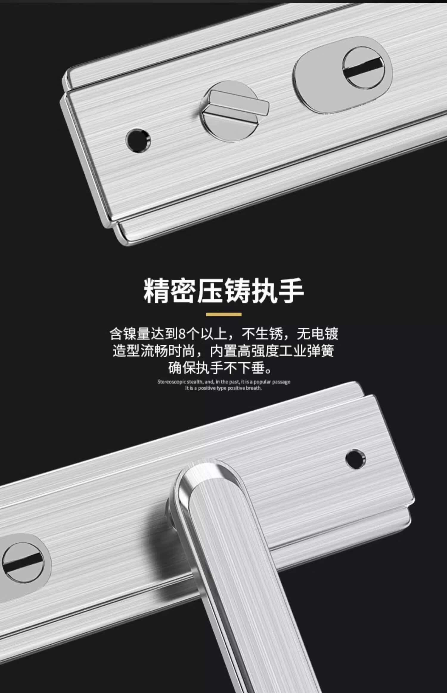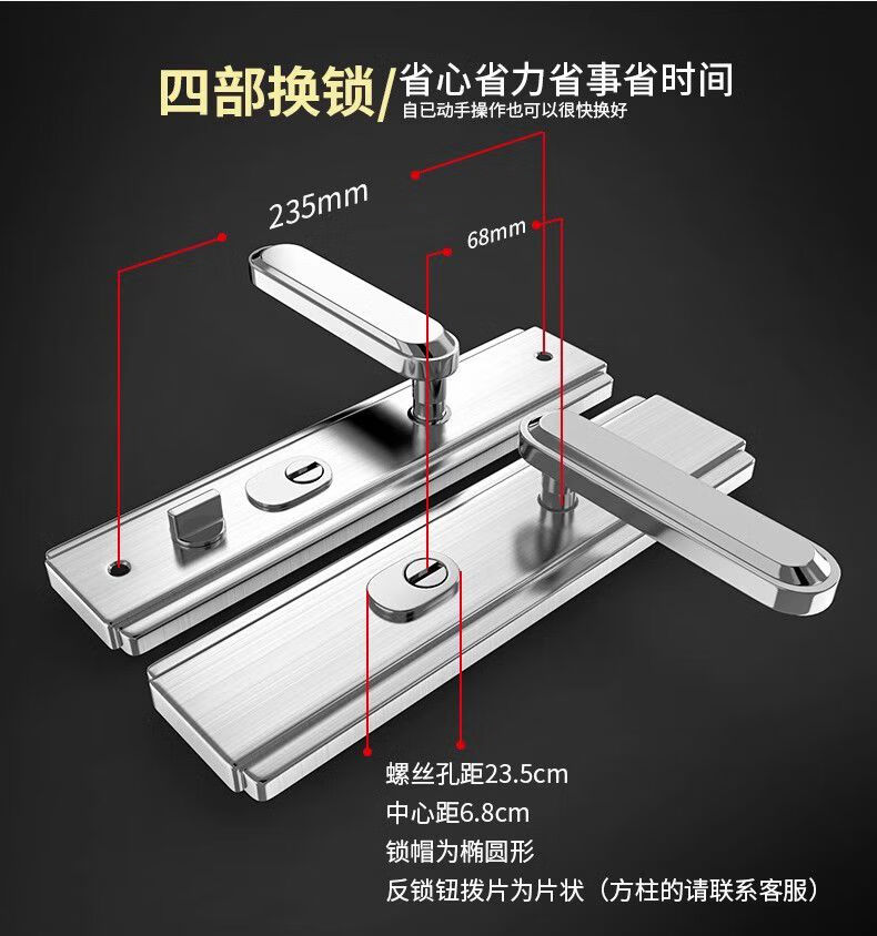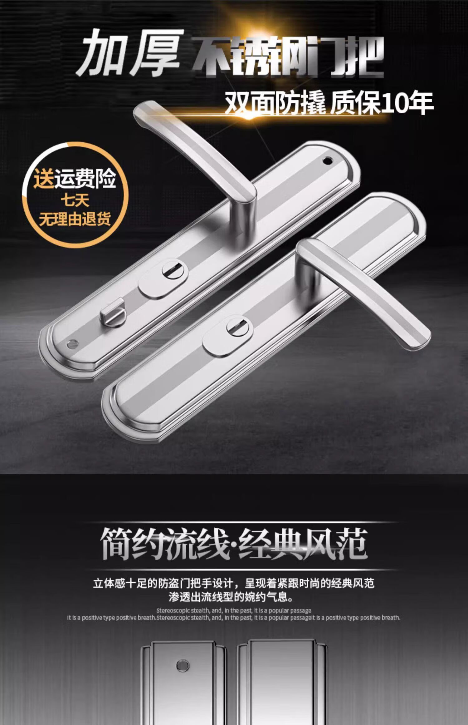 映浪多功能家用不锈钢防盗门把手锁外门防撬门加厚入户大门替换型拉手 门厚5cm单活不分左右 不带钥匙