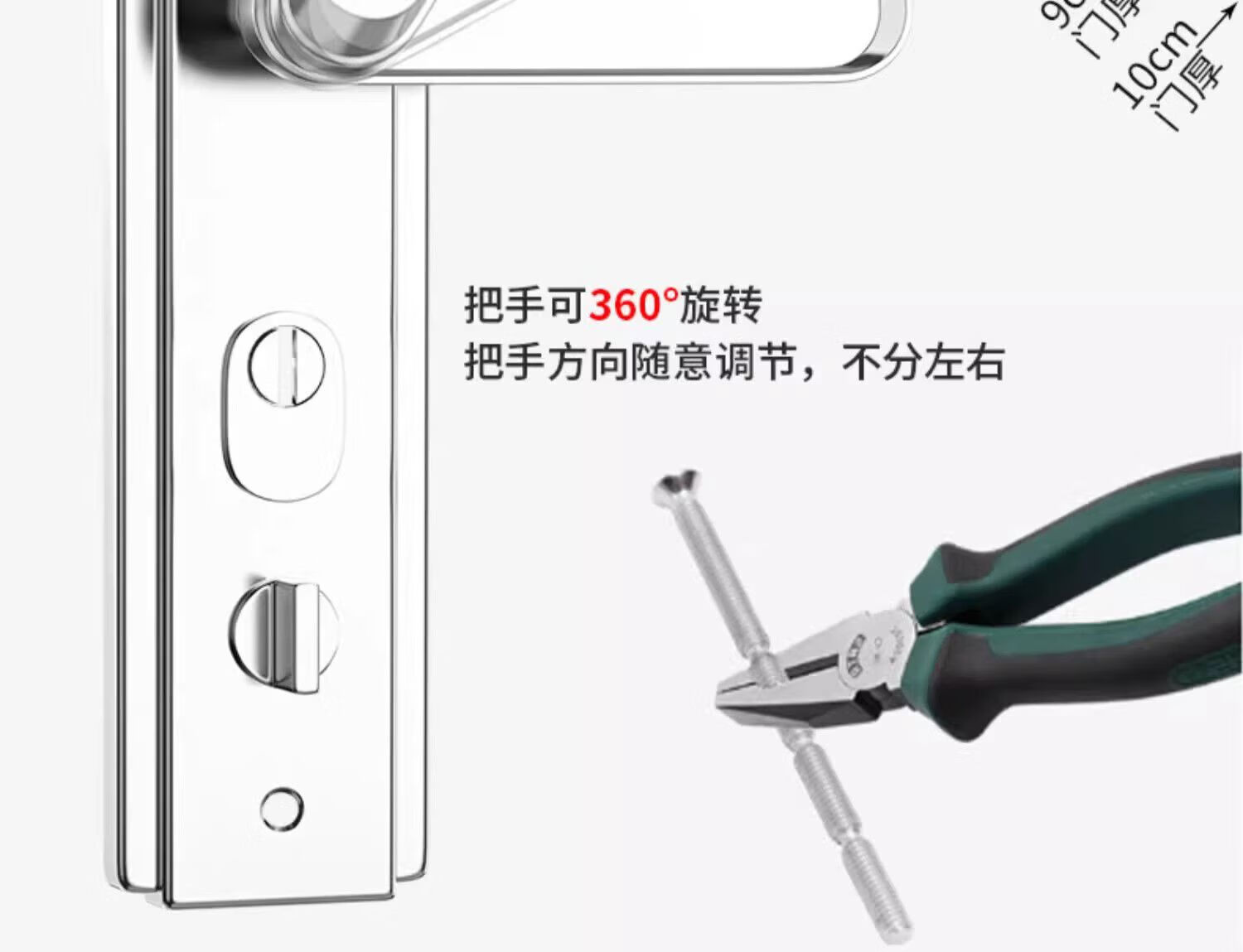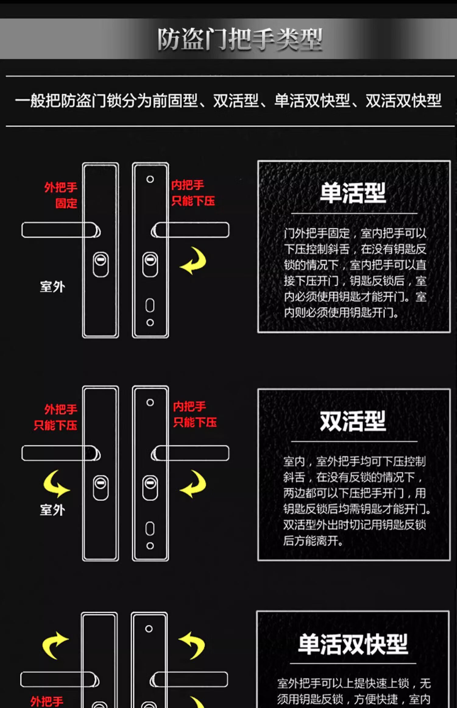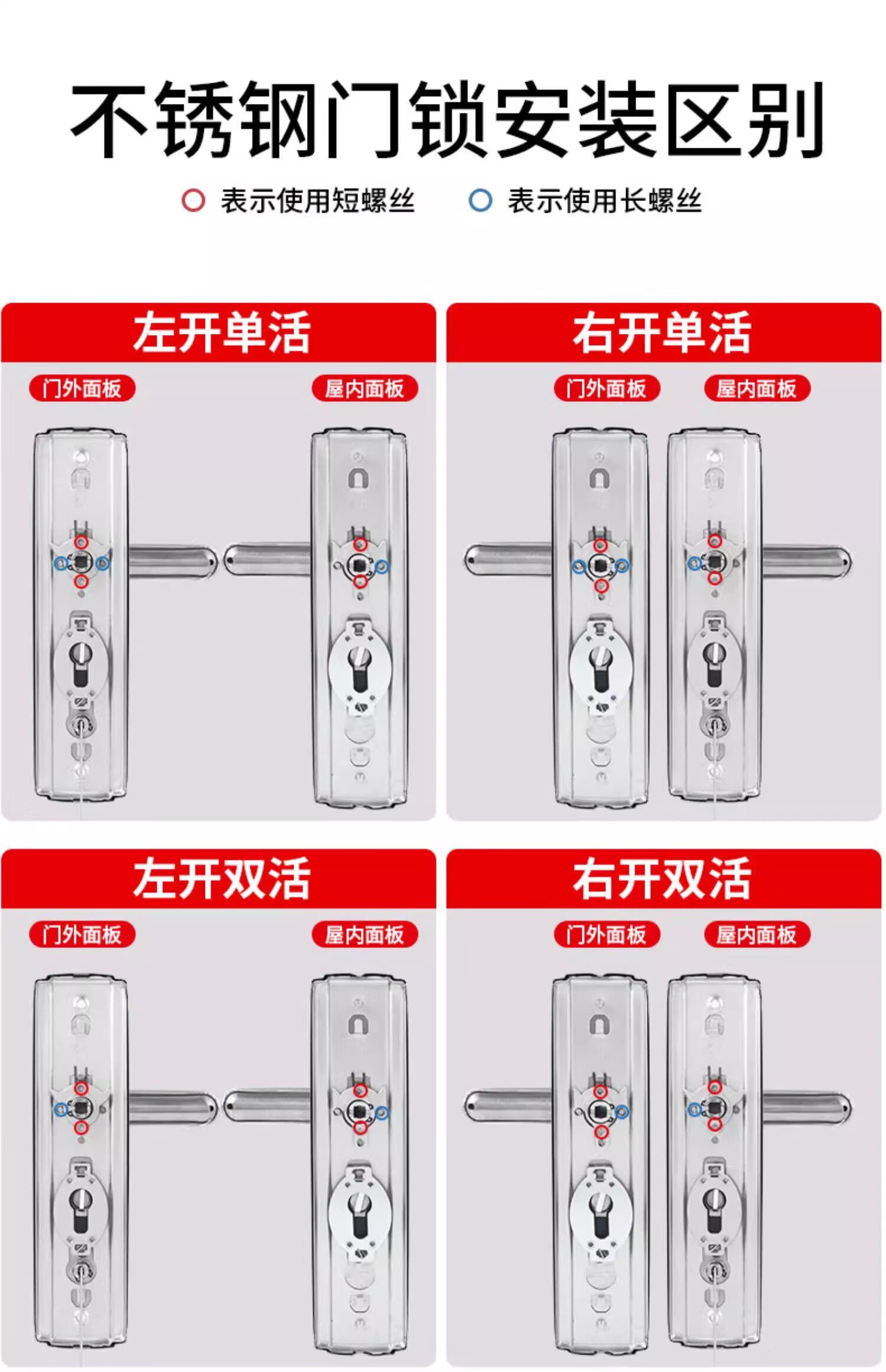 映浪多功能家用不锈钢防盗门把手锁外门防撬门加厚入户大门替换型拉手 门厚5cm单活不分左右 不带钥匙