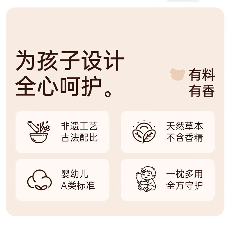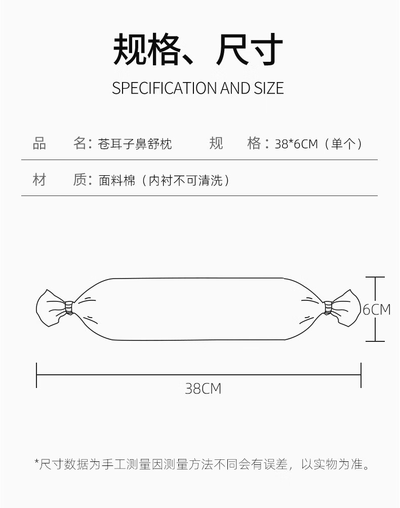 合香枕儿童睡觉古法中药枕手工香丸安抚抱枕五福籽苍耳枕头护颈枕 乖乖猫鼻舒枕 单只 38cm*6cm