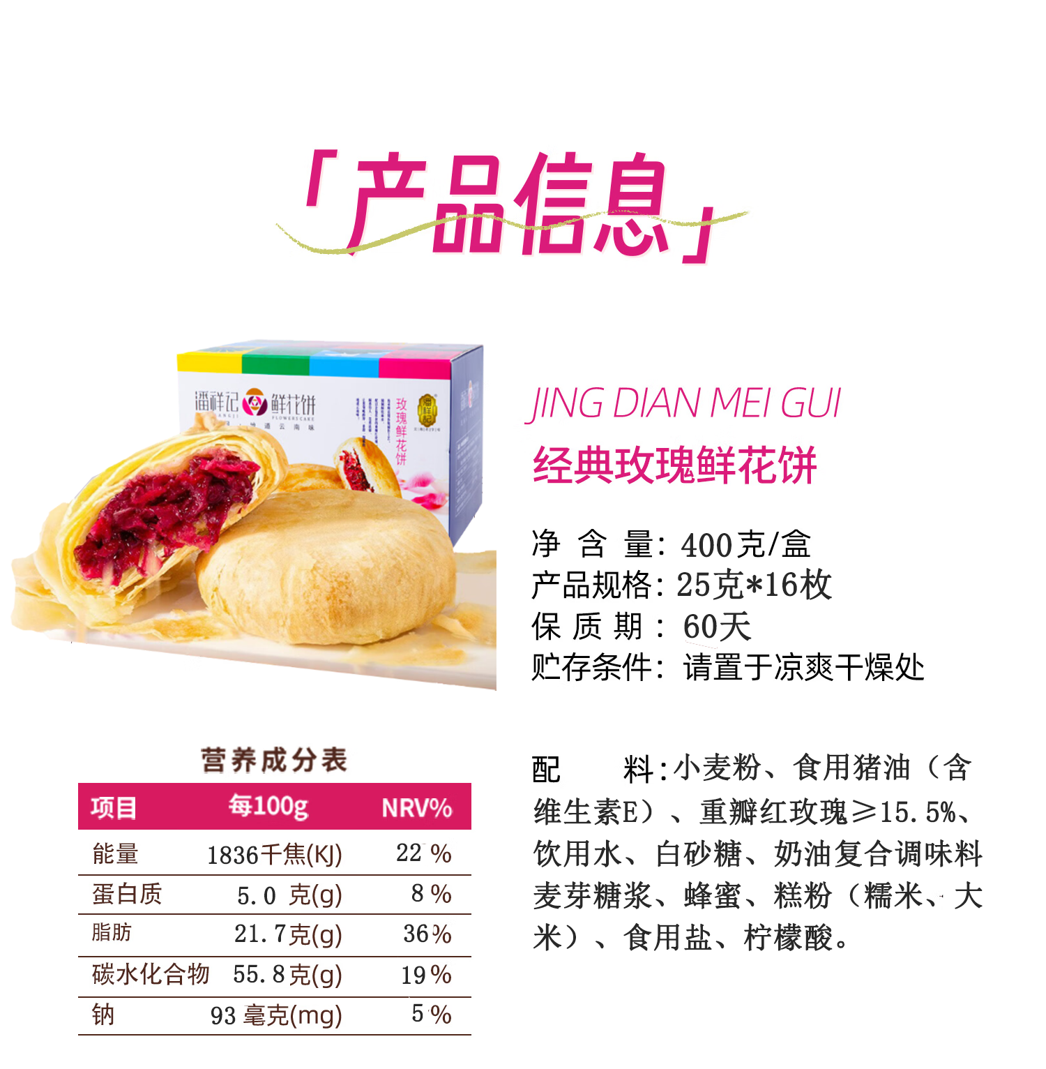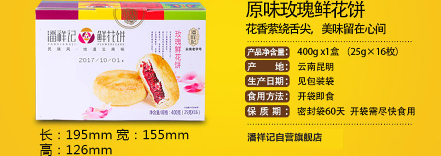 潘祥记经典玫瑰鲜花饼 云南特产传统饼干糕点零食团购25g*16枚